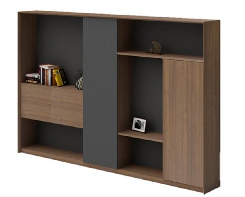 Шкаф с консольными полками: В нижней части шкафа распашные дверки, в верхней части 2 открытые полки толщиной 18 мм чёрного цвета. Корпус шкафа и задняя панель: меламин. Дверки: шпон.