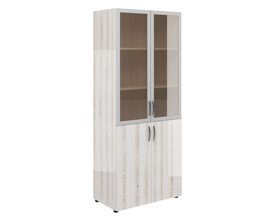 Шкаф для документов высокий низкими дверьми и стеклом в МДФ Консул лак арт. KNL-6.4 800х430х1945