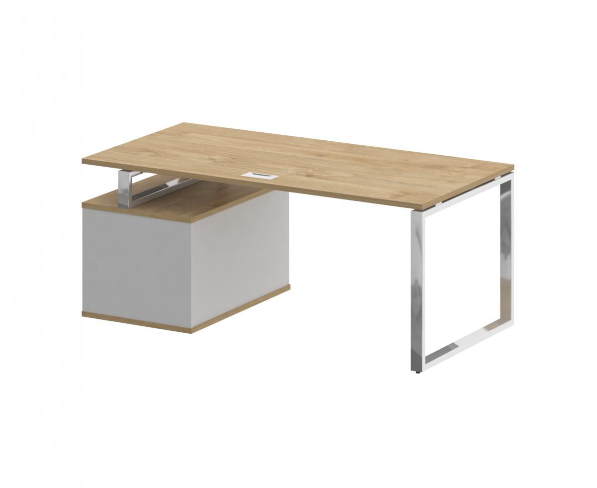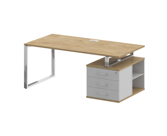 Стол руководителя с правой опорной тумбой SHIFT RIVA SK.SRT-180(R) Тиквуд светлый/Белый бриллиант 1800*904*753