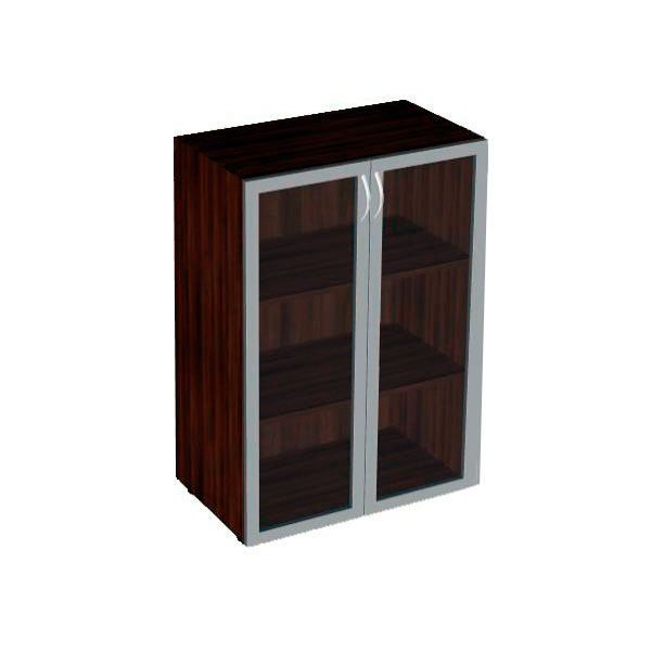 Шкаф для документов средний широкий со стеклом в алюминиевой раме САТИН Статус арт. C-5.0.6 800х430х1177 Венге