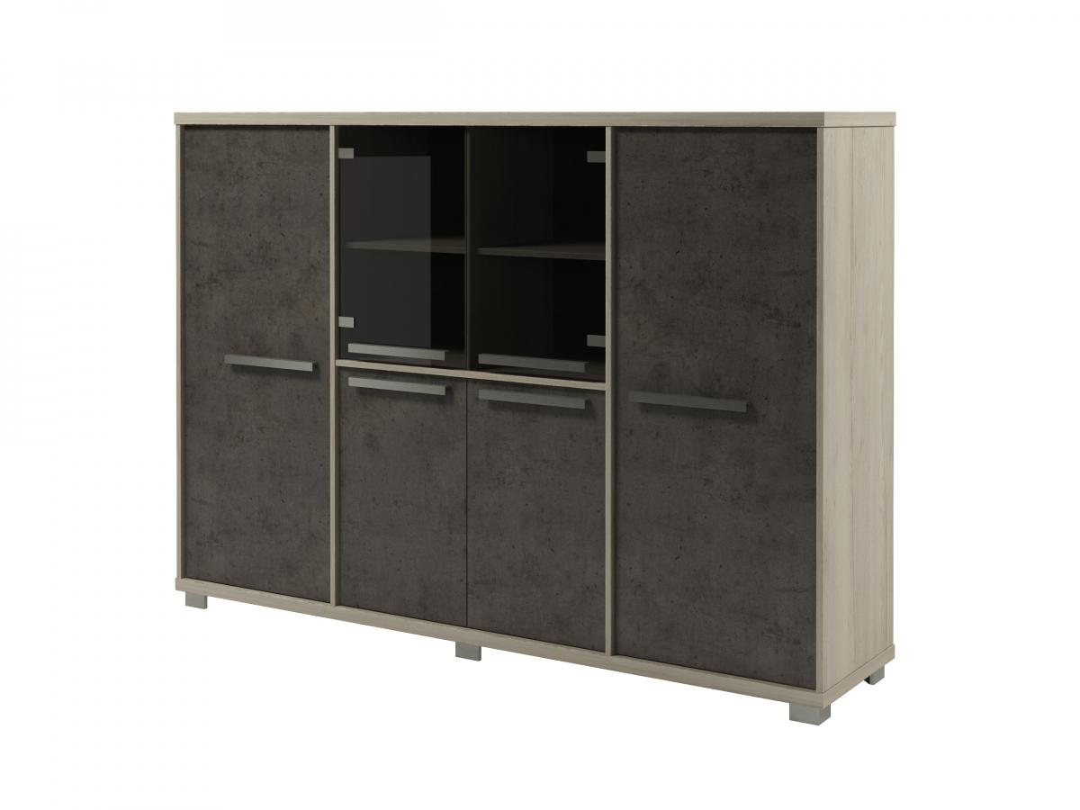 Шкаф высокий четырехсекционный с гардеробом Vestar Z-34-01 Дуб Галифакс/Бетон Чикаго 2160x500x1538 (Экспро)
