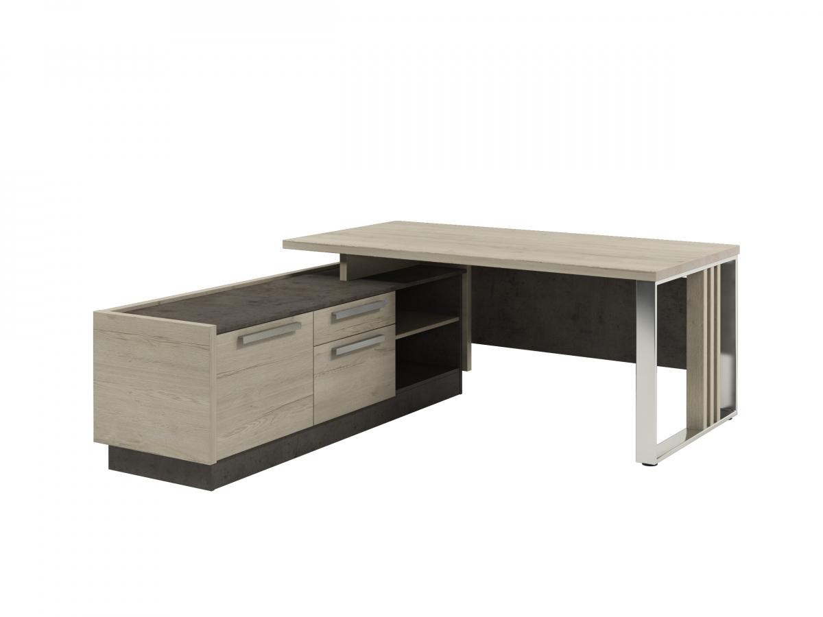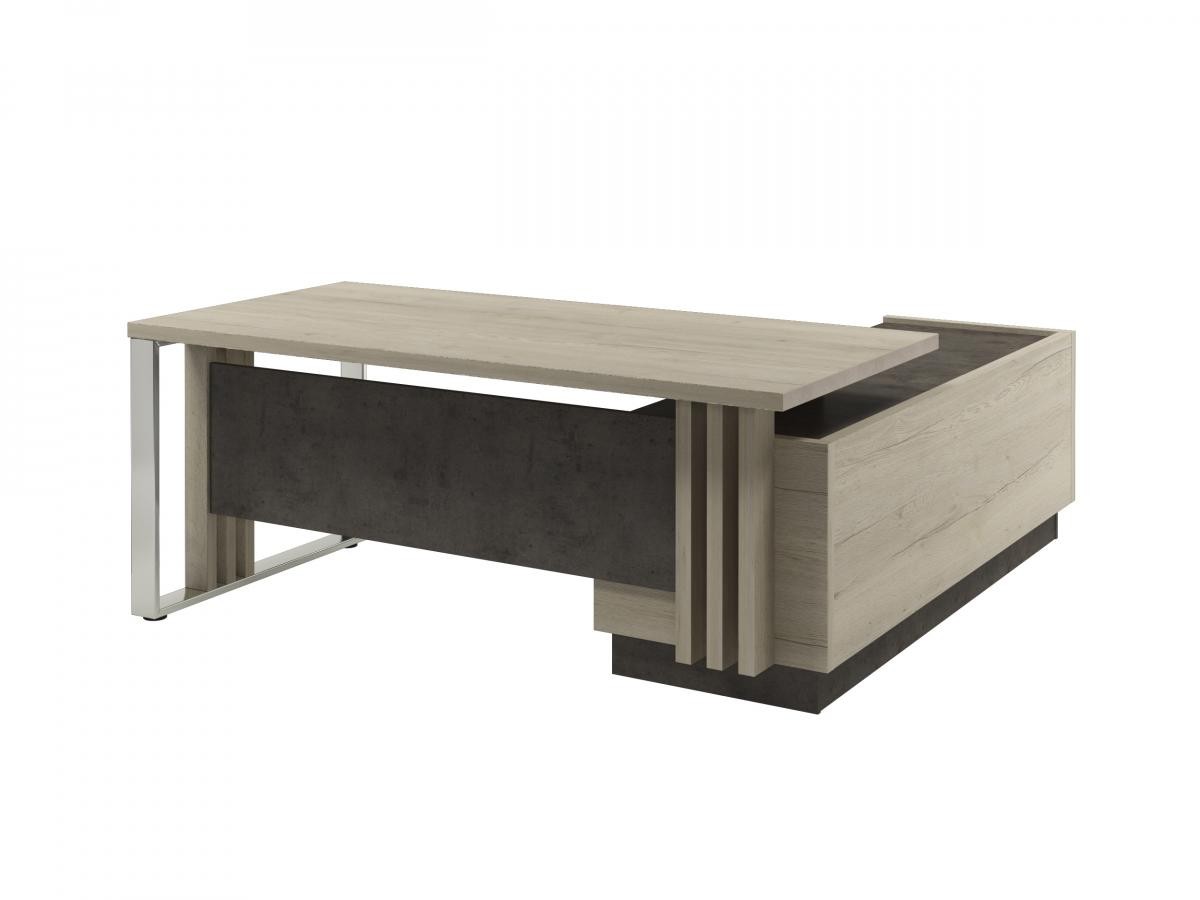 Стол для руководителя с опорной тумбой, левый (без розеток) Vestar Z-418л.0000 Дуб Галифакс/Бетон Чикаго 1800х2030х750 (Экспро)
