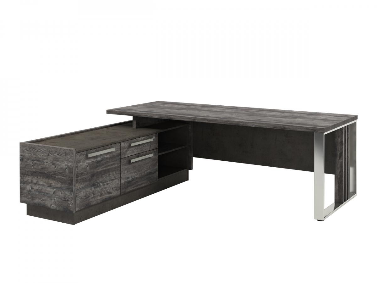 Стол для руководителя с опорной тумбой и металлической опорой, левый (без розеток) Vestar Z-422л.0000 Сосна Пасадена/Бетон Чикаго 2200х2030х750 (Экспро)