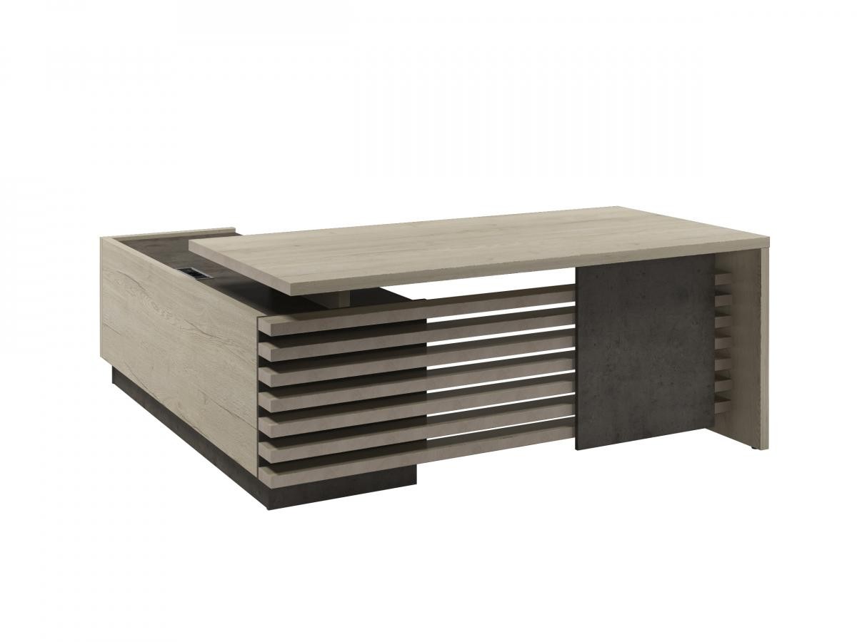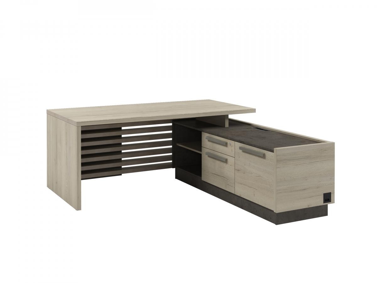 Стол для руководителя с опорной тумбой, правый с блоком розеток Vestar Z-218пр.1000 Дуб Галифакс/Бетон Чикаго 1800x2030x750 (Экспро)