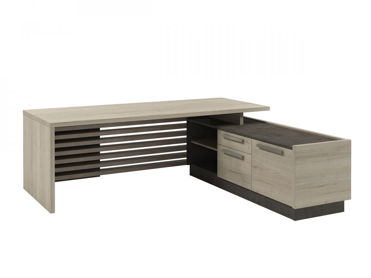 Стол для руководителя с опорной тумбой, правый (без розеток) Vestar Z-222пр.0000 Дуб Галифакс/Бетон Чикаго 2200х2030х750 (Экспро)