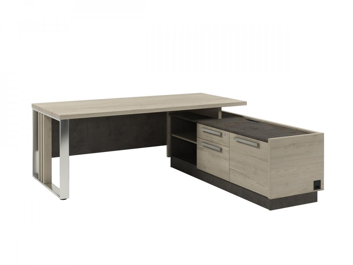 Стол для руководителя с опорной тумбой, правый с блоком розеток Vestar Z-420пр.1000 Дуб Галифакс/Бетон Чикаго 2000х2030х750 (Экспро)