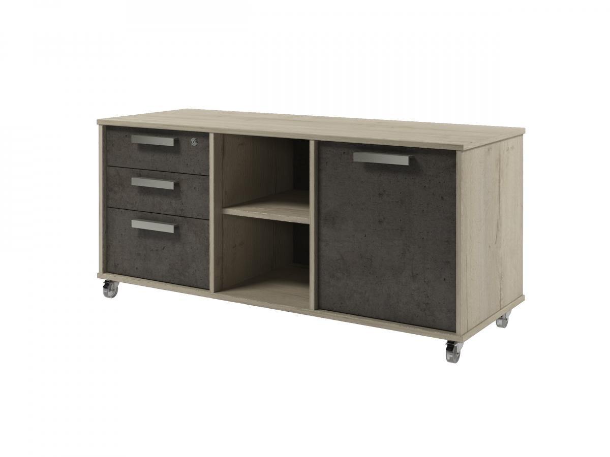 Тумба для документов (греденция, 3 ящика и дверь) Vestar Z-292-1 Дуб Галифакс/Бетон Чикаго 1346x500x615 (Экспро)