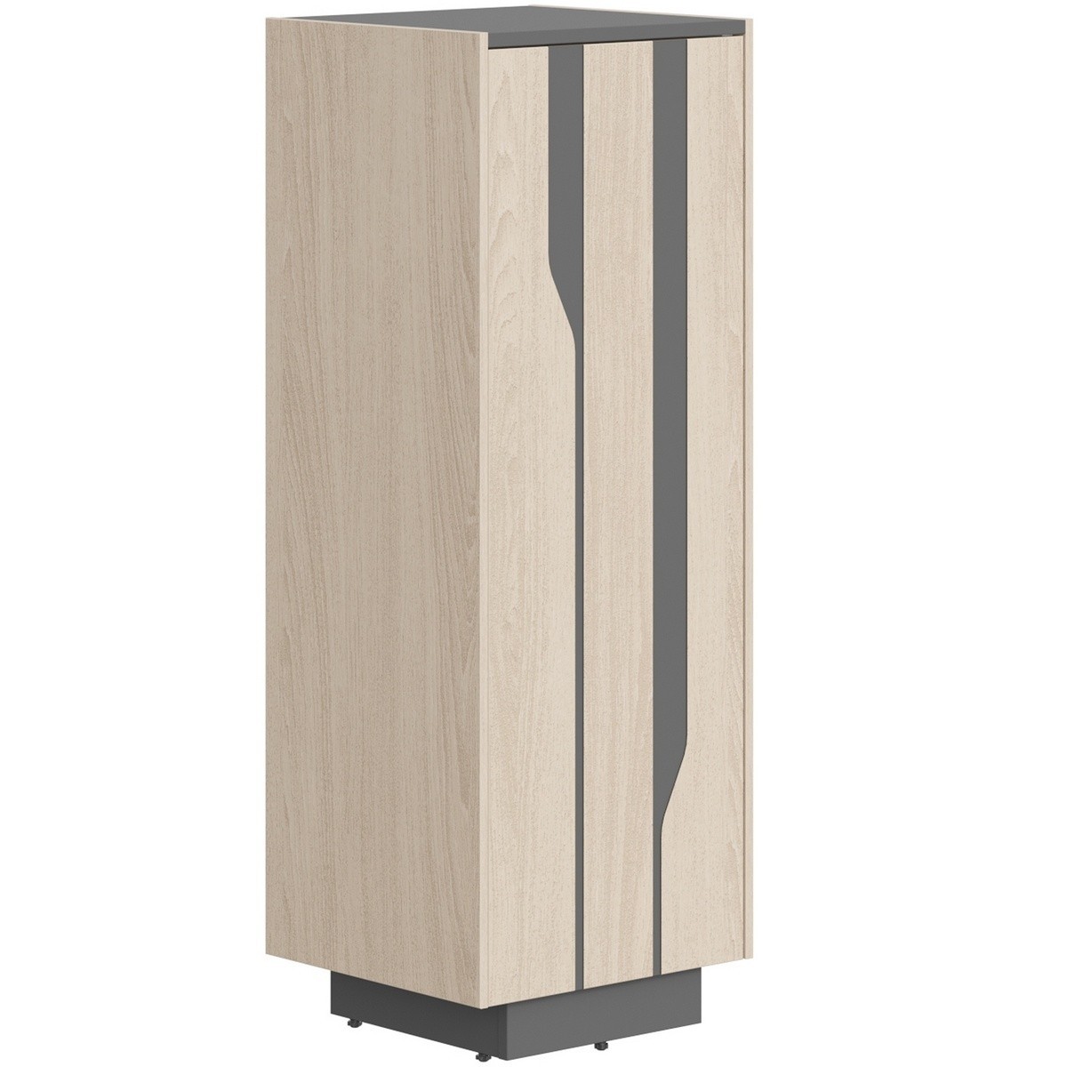 Каркас из ЛДСП т.18мм, кромка ABS т.0,8мм, задняя стенка из ЛДСП т.18мм. Наружная декоративная обкладка из МДФ т.12мм, покрытие - шпон. Фасады - из МДФ т.19мм, покрытие - шпон, с декоративным фигурным рисунком. Открывание фасадов - система "Push to Open". Каркас шкафа устанавливается на цокольной коробке. Регулируемые опоры, диапазон регулировок - от 0 до 12мм.