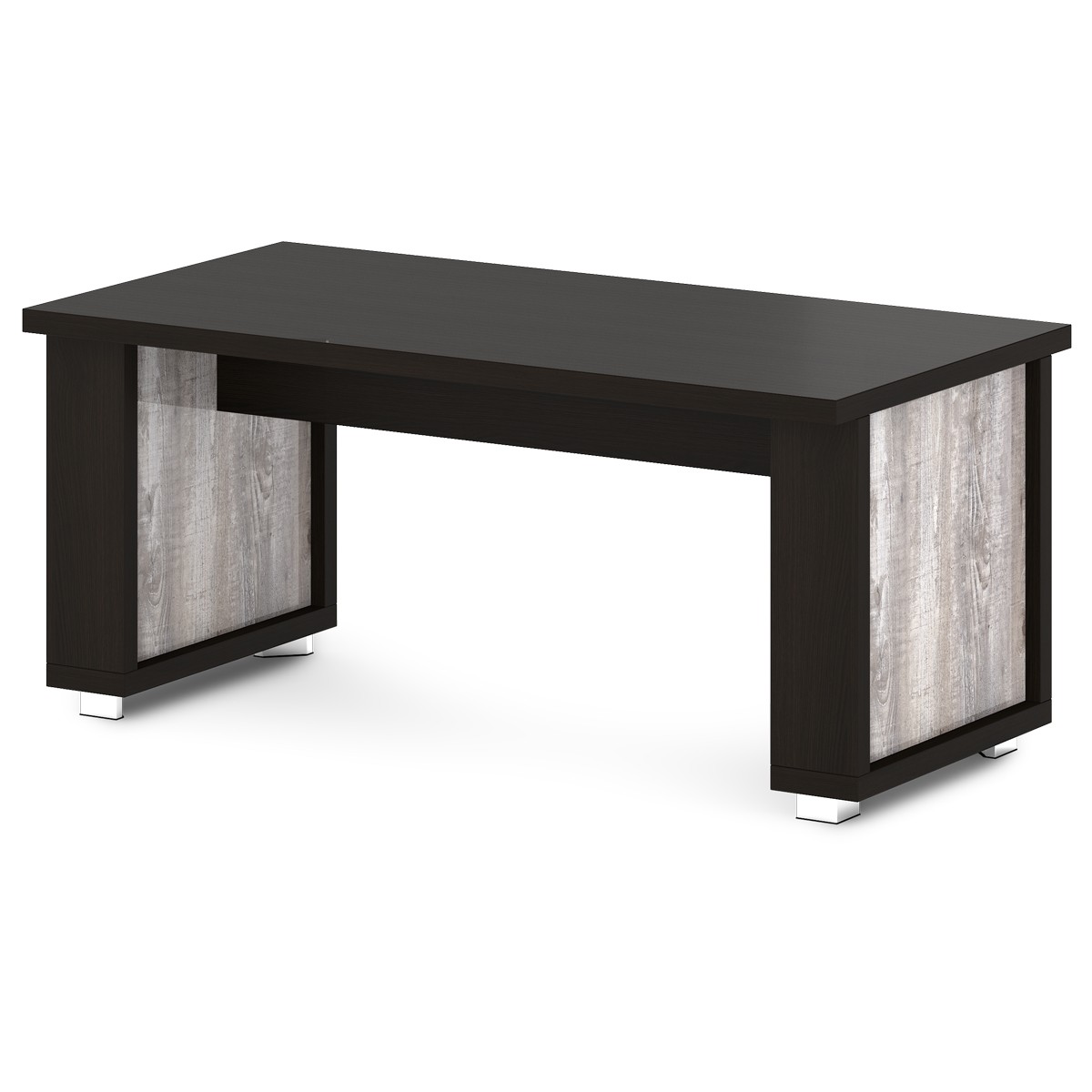 Столешница изготавливается из ЛДСП толщиной 43 мм. Торцы столешницы облицованы кромкой ABS толщиной 2 мм в цвет плиты. Соединительный щит – ЛДСП 18 мм, торцы облицованы кромкой ABS толщиной 2 мм в цвет плиты. Каркасы сборных опор изготавливаются из ЛДСП 43 мм, торцы облицованы кромкой ABS толщиной 2 мм по всему периметру в цвет плиты. Внутреннее наполнение сборных опор – 2 щита из ЛДСП 18 мм с лаковым покрытием. Каждая сборная опора установлена на 2-х регулируемых опорах размером 80х80х48. Опоры 5-угольной формы, черные пластиковые, с металлической накладкой по периметру, покрытие «Хром блестящий». Брифинг-приставка собирается на эксцентриковых стяжках, конфирматах и шкантах, что позволяет многократную сборку-разборку мебели. Эксцентрики закрываются самоклеющимися заглушками в цвет плиты.