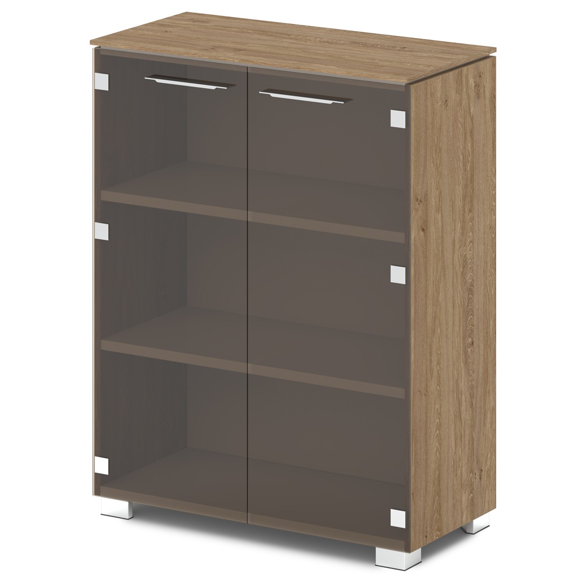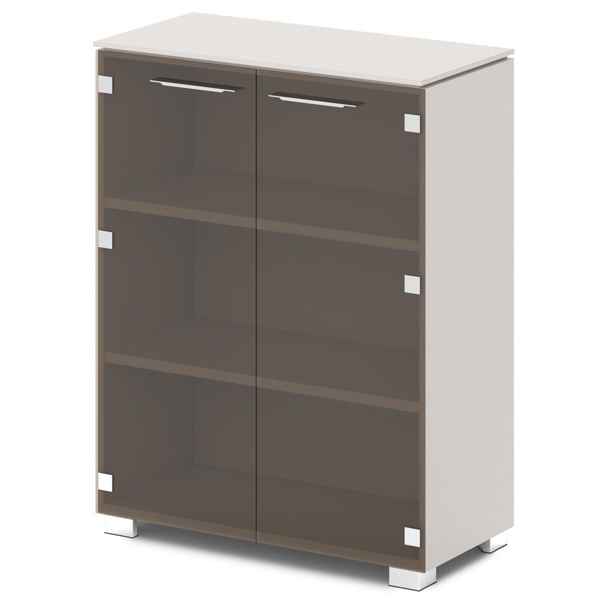 Шкаф для документов средний широкий, 3 полки, задняя стенка ЛДСП, двери стеклянные средние