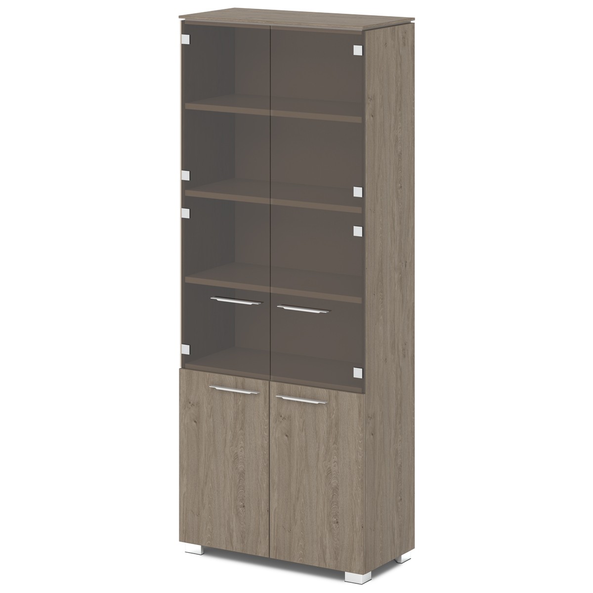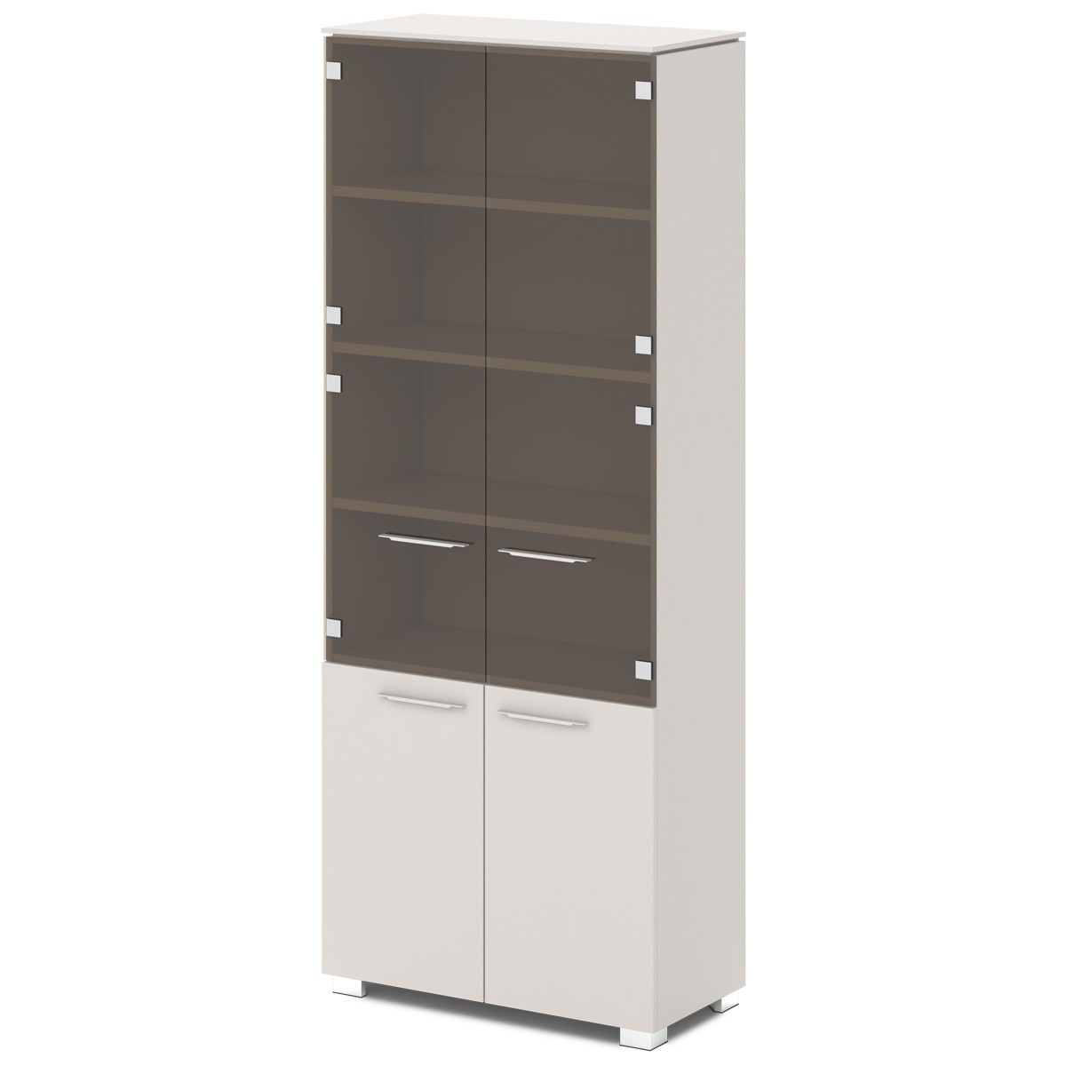 Шкаф для документов высокий широкий, 6 полок, задняя стенка ЛДСП, двери низкие и двери стеклянные высокие