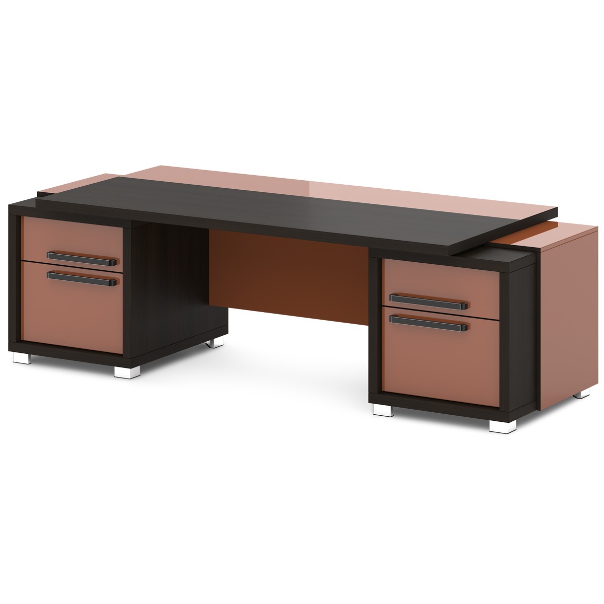 Стол руководителя с 2 тумбами (L-119) Grace, Дуб Линдберг Темный и Терракот 2270x1000x750 (2000х1000 - столешница) Дуб Линдберг Темный и Терракот