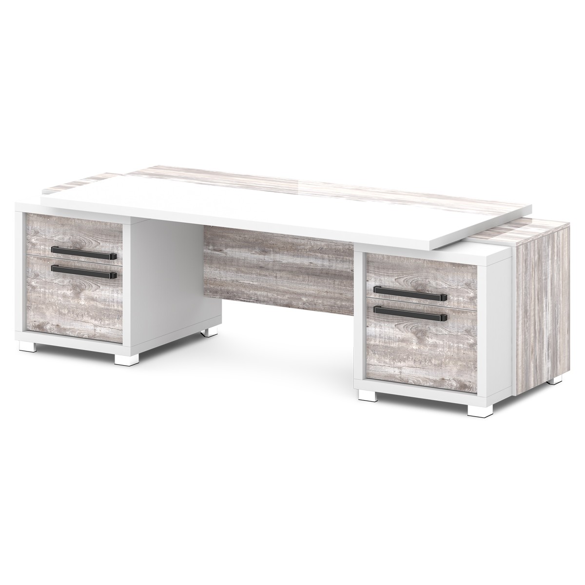 Стол руководителя с 2 тумбами (L-119) Grace, Дуб Линдберг темный 2270x1000x750 (2000х1000 - столешница) Дуб Линдберг темный