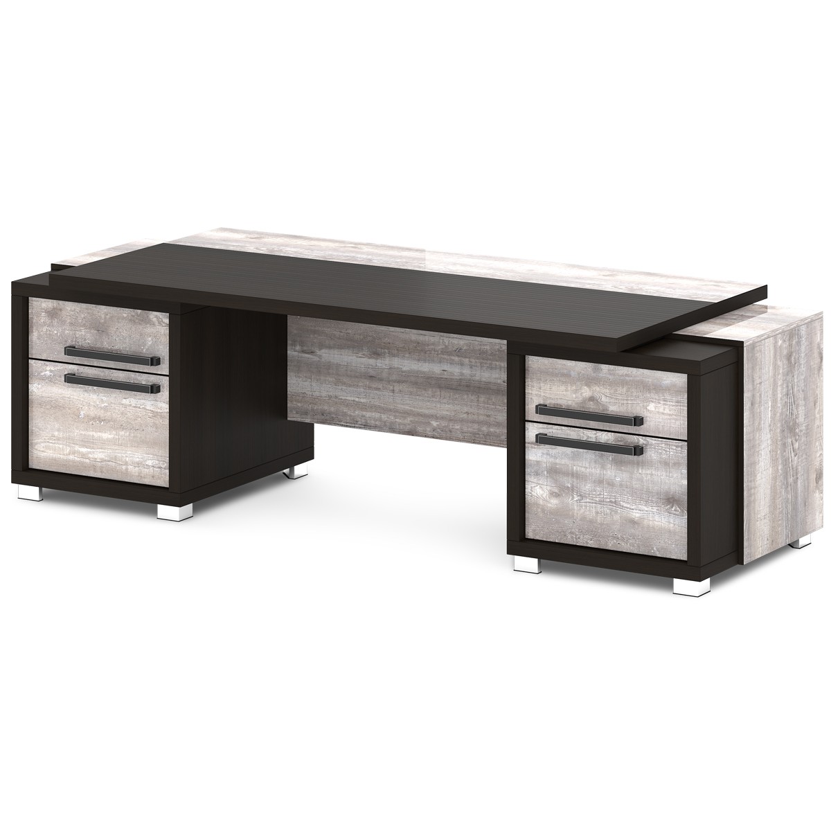 Стол руководителя с 2 тумбами (L-121) Grace, Дуб Линдберг Темный и Бетон Пайн 2470x1000x750 (2000х1000 - столешница)