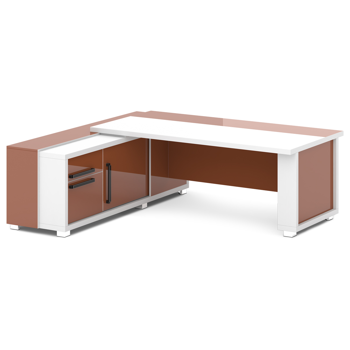 Стол руководителя с греденцией (L-111 пр/л ) Grace, Дуб Линдберг Темный и Горький Шоколад 1835х2016х750 (2000х1000 - столешница) Дуб Линдберг Темный и Горький Шоколад