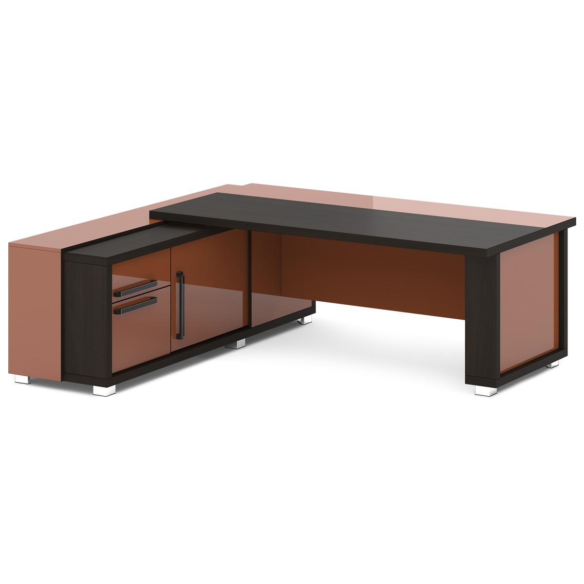 Стол руководителя с греденцией (L-116 пр/л ) Grace, Alba Margarita и Терракот 2035х2016х750 (2000х1000 - столешница) Alba Margarita и Терракот