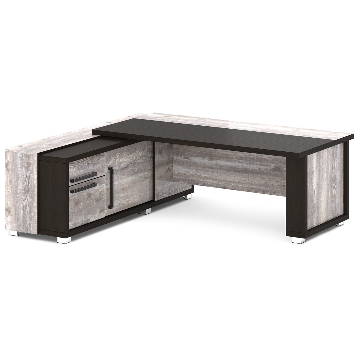 Стол руководителя с греденцией (L-117 пр/л ) Grace, Дуб Линдберг Темный и Серый Шелк 2235х2016х750 (2000х1000 - столешница) Дуб Линдберг Темный и Серый Шелк