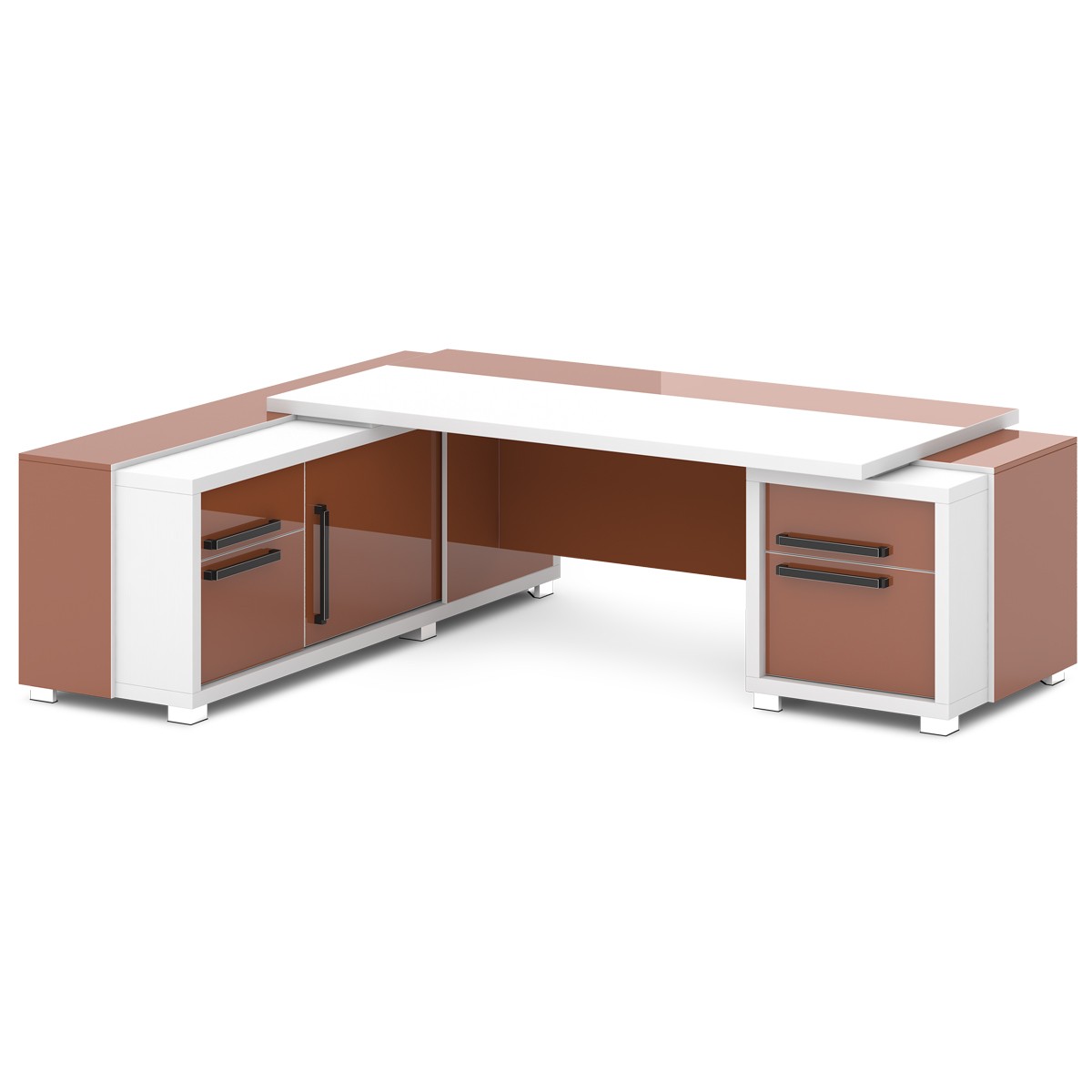Стол руководителя с тумбой и греденцией (L-113 пр/л) Grace, Alba Margarita и Терракот 2070х2016х750 (1600х1000 - столешница) Alba Margarita и Терракот