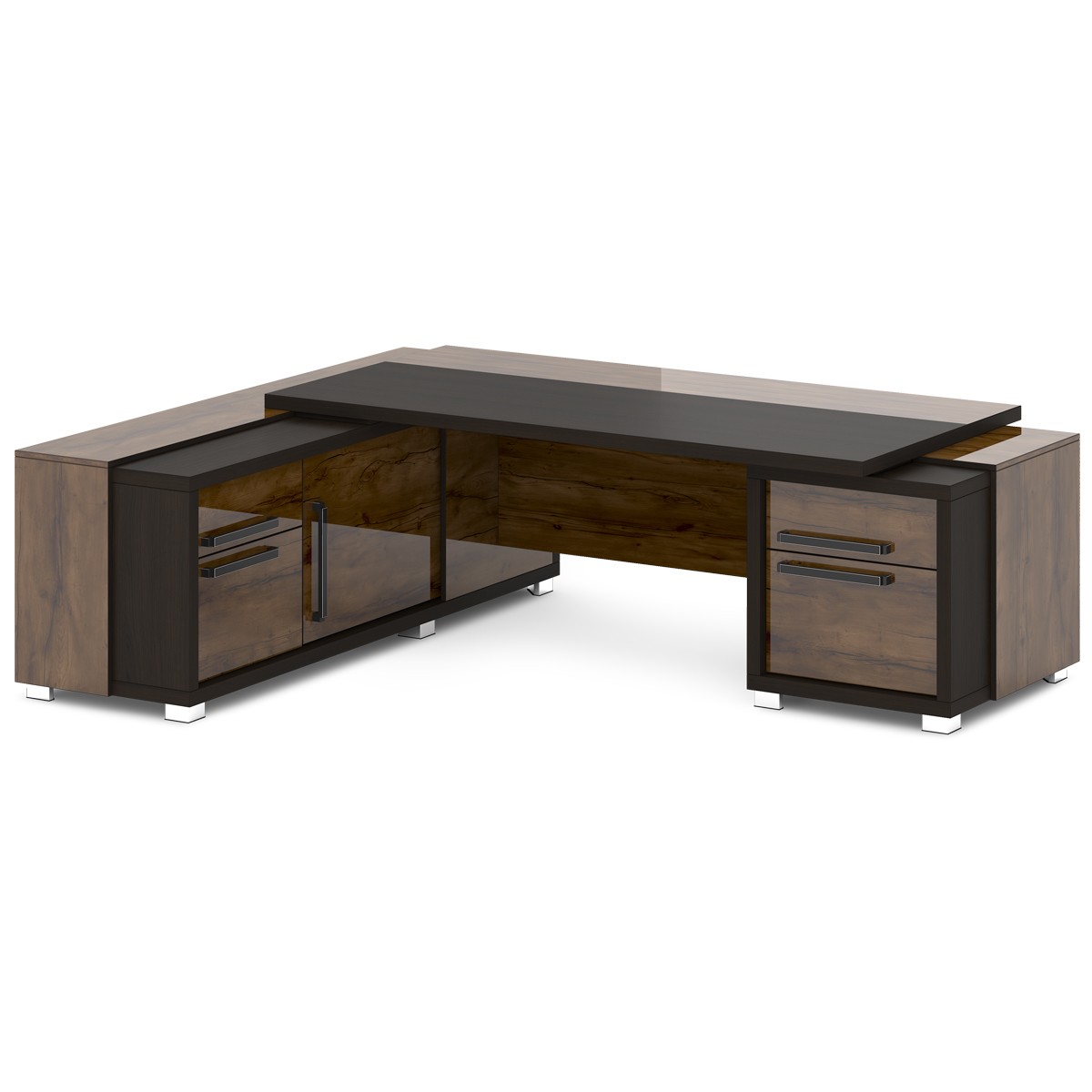 Стол руководителя с тумбой и греденцией (L-113 пр/л) Grace, Alba Margarita и Горький Шоколад 2070х2016х750 (1600х1000 - столешница) Alba Margarita и Горький Шоколад
