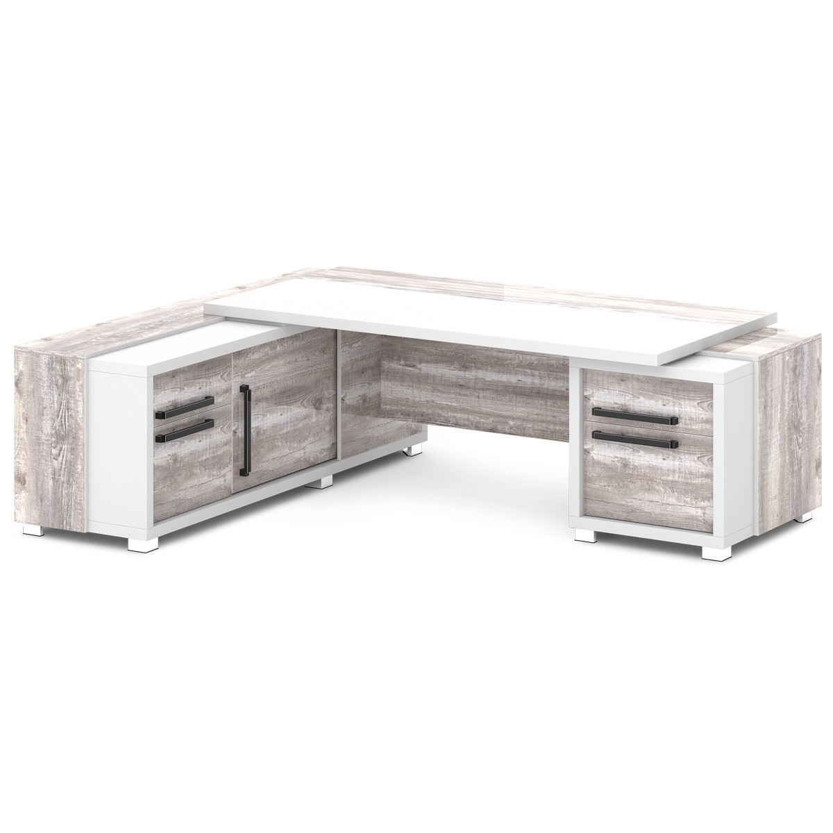 Стол руководителя с тумбой и греденцией (L-118 пр/л) Grace, Дуб Линдберг Темный и Терракот 2270х2016х750 (1800х1000 - столешница) Дуб Линдберг Темный и Терракот