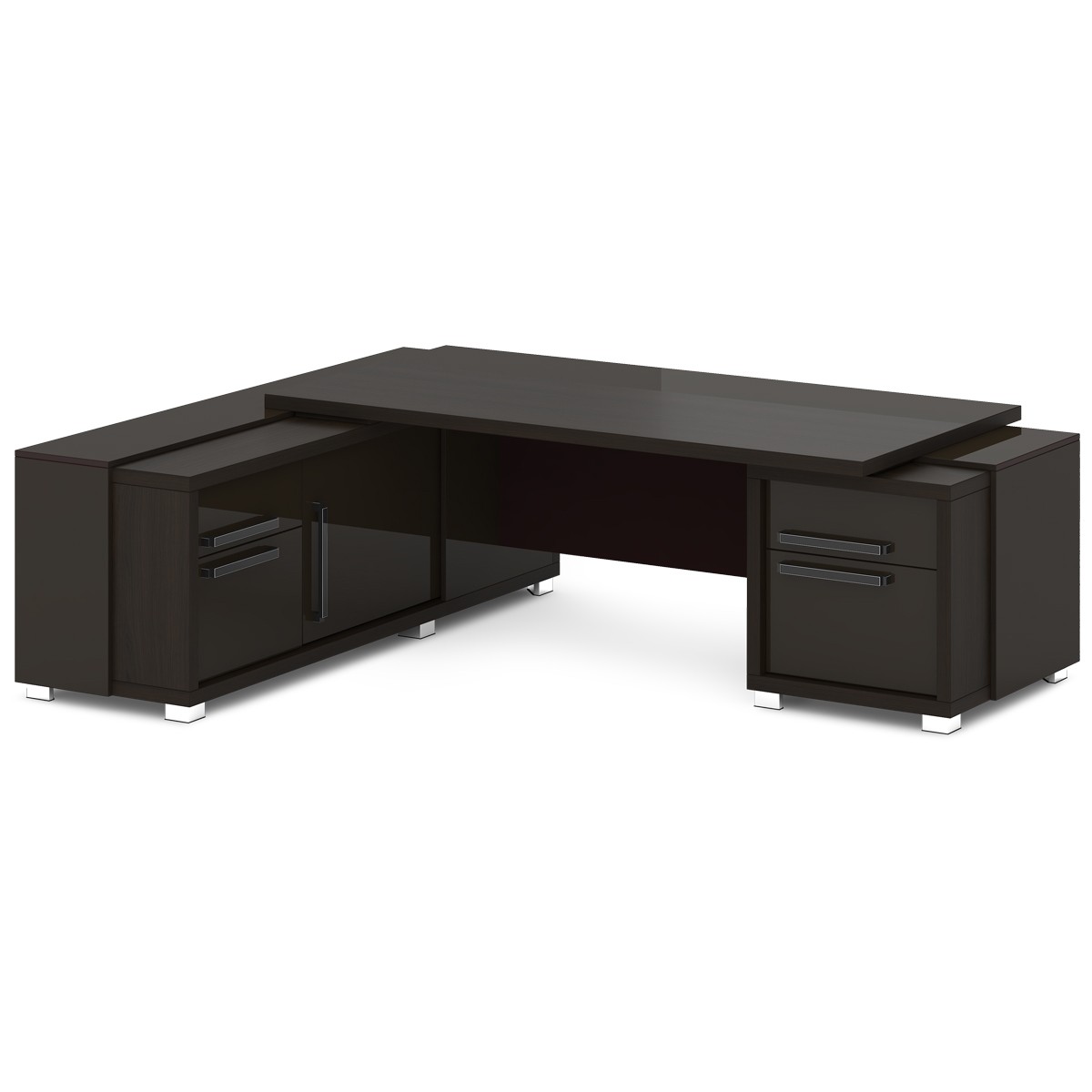 Стол руководителя с тумбой и греденцией (L-118 пр/л) Grace, Дуб Линдберг темный / Tasso Nero 2270х2016х750 (1800х1000 - столешница) Дуб Линдберг темный / Tasso Nero