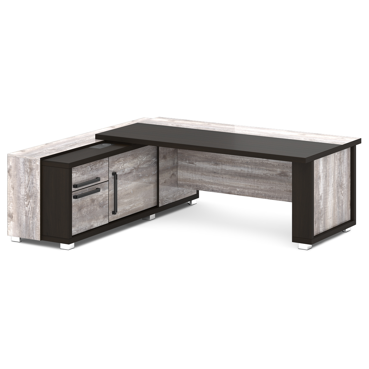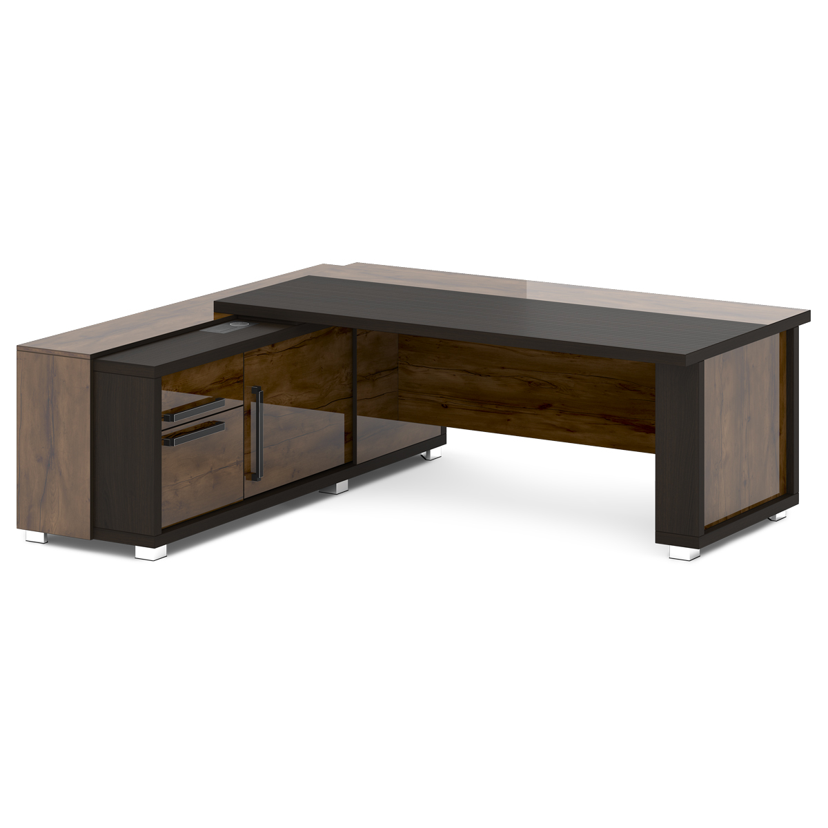 Стол руководителя с тумбой и греденцией (с блоком розеток) (L-11 пр/л ) Grace, Дуб Линдберг Темный и Горький Шоколад 1835х2016х750 (2000х1000 - столешница) Дуб Линдберг Темный и Горький Шоколад
