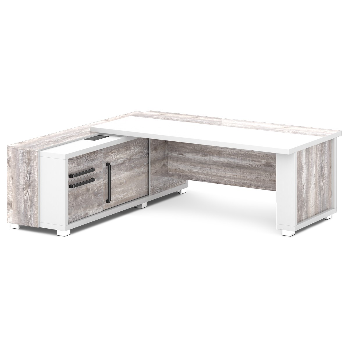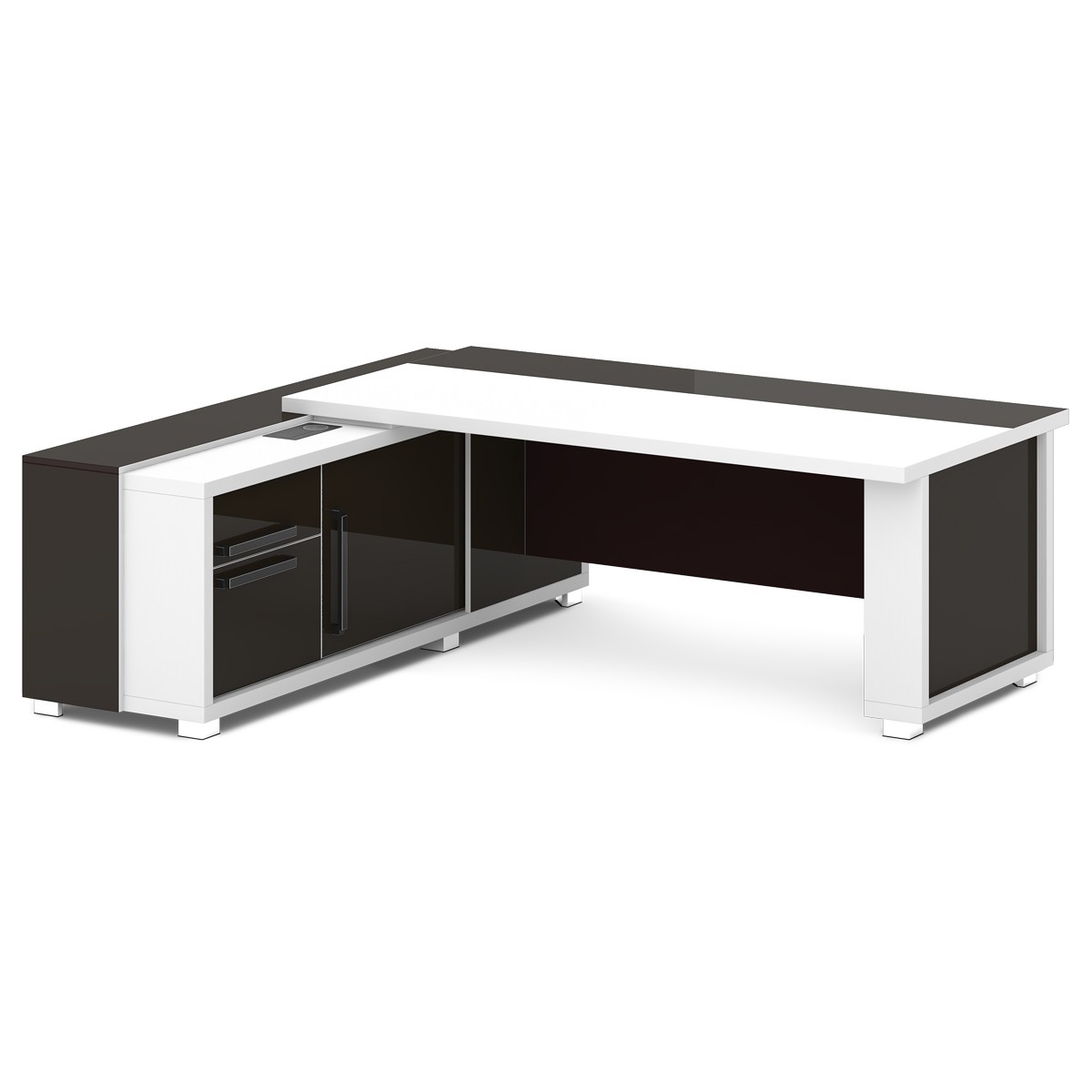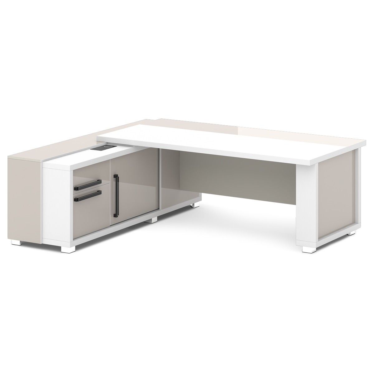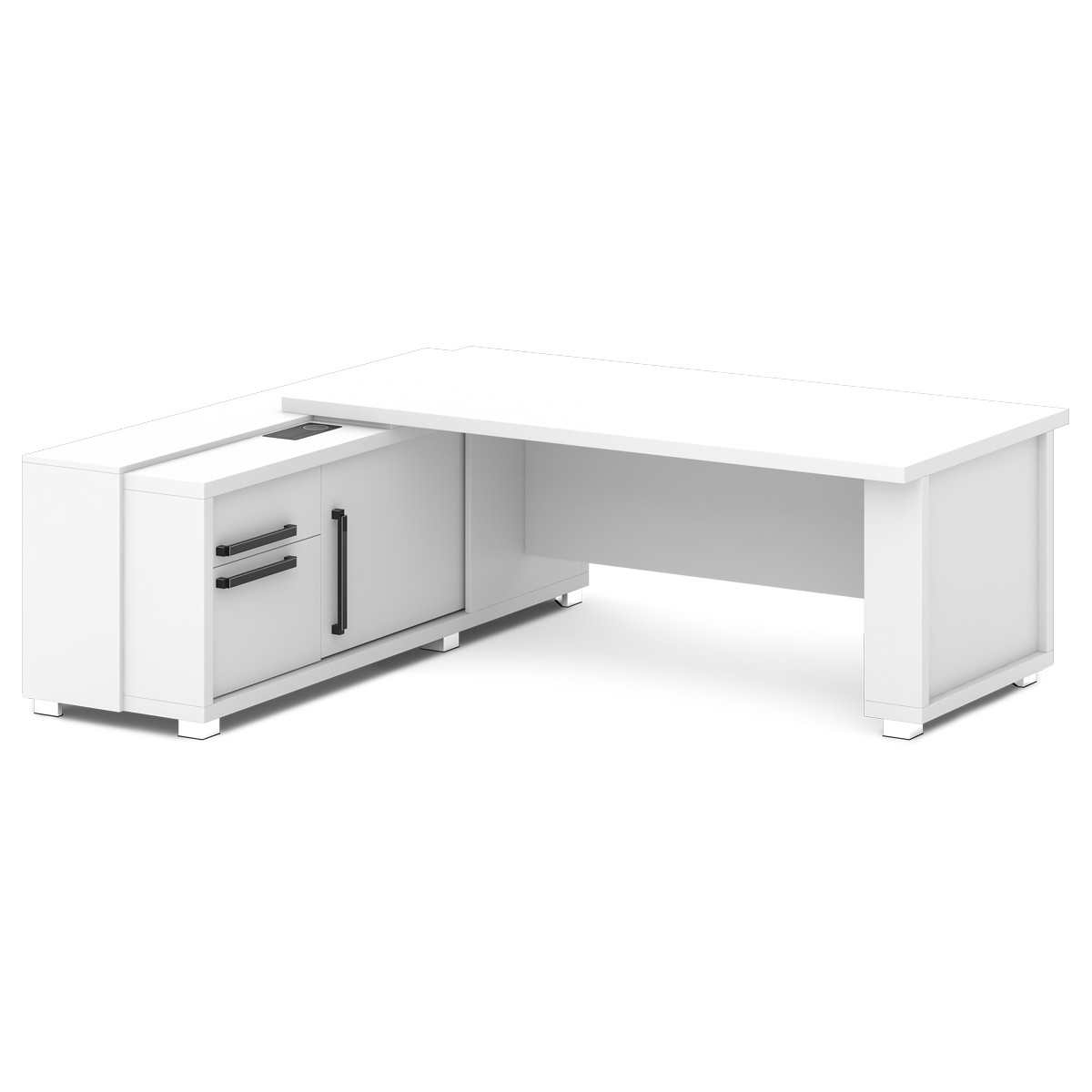 Стол руководителя с тумбой и греденцией (с блоком розеток) (L-16 пр/л ) Grace, Alba Margarita и Tasso Nero 2035х2016х750 (2000х1000 - столешница) Alba Margarita и Tasso Nero
