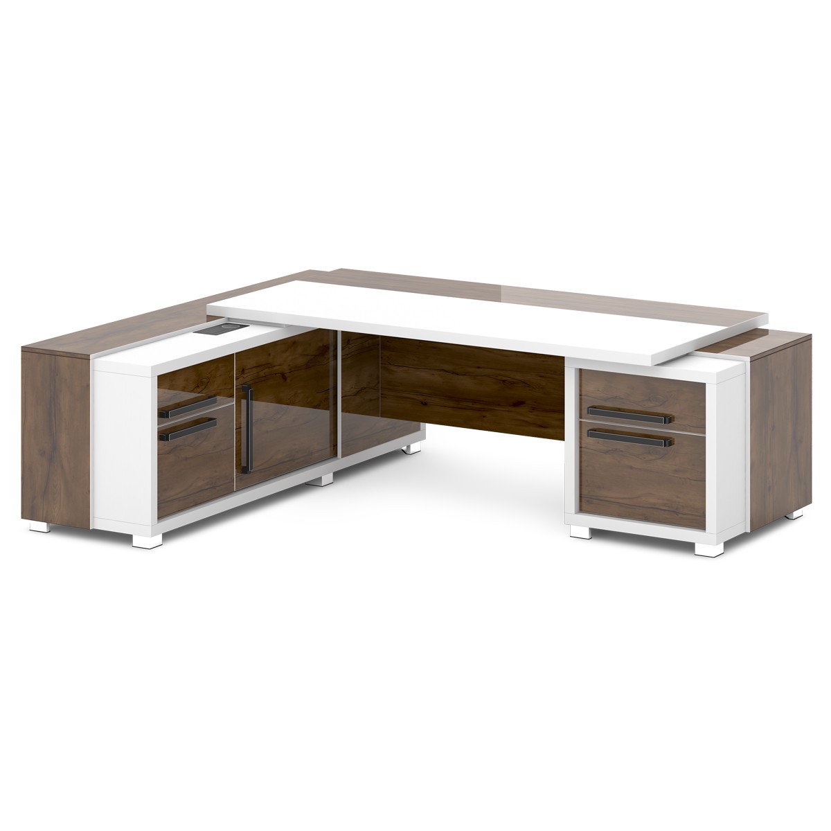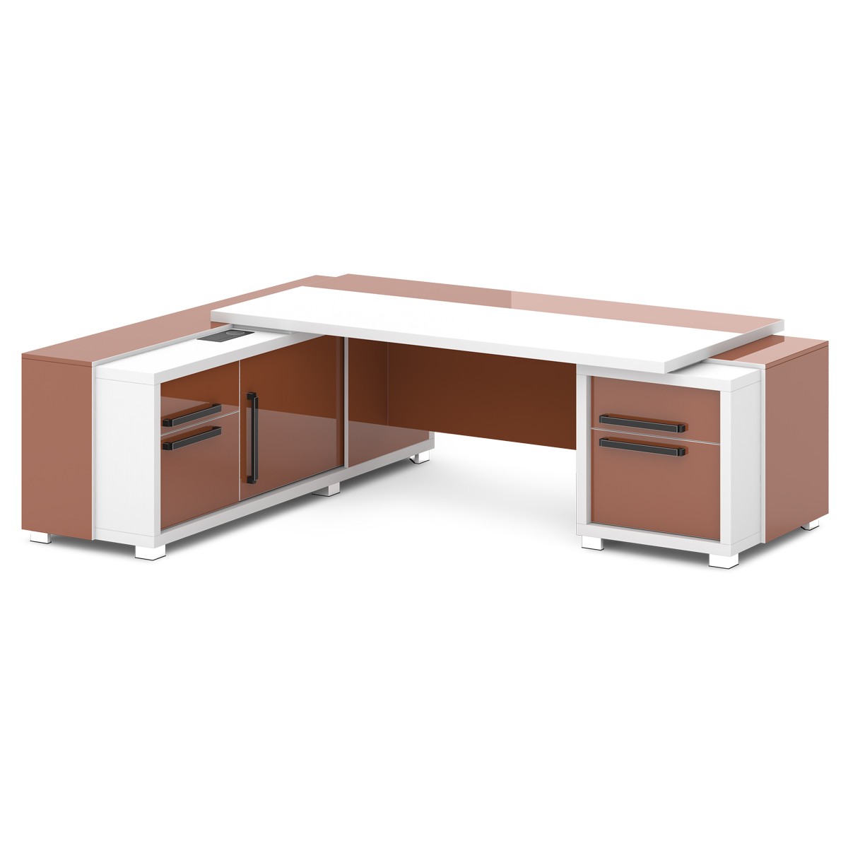 Стол руководителя с тумбой и греденцией (с блоком розеток) (L-20 пр/л) Grace, Дуб Линдберг темный и Tasso Nero 2470х2016х750 (2000х1000 - столешница) Дуб Линдберг темный и Tasso Nero