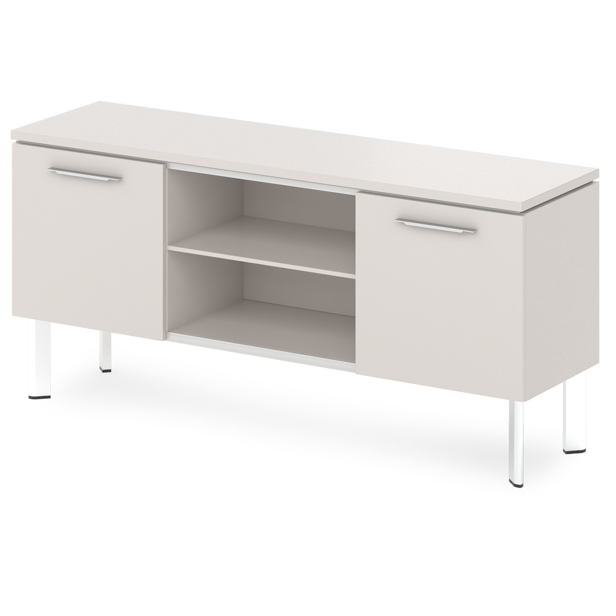 Артикул: G-69. Размеры: 1600x442x750. Каркас тумбы и фасады выполнены из ЛДСП 18 мм, облицованы кромкой ABS толщиной 2 мм в цвет плиты. Топ тумб приподнят над каркасом на 9 мм, изготовлен из ЛДСП 25 мм, облицован кромкой ABS 2 мм в цвет плиты. Тумба имеет 4 выдвижных ящика с метабоксами. Каждый ящик оснащен доводчиком. Дно ящиков - из ЛДСП толщиной 12 мм. В фасад первого ящика устанавливается замок со складным ключом. Тумба установлена на 4-х регулируемых опорах размером 80х80х48 мм. Опоры 5-угольной формы, черные пластиковые, с металлической накладкой по периметру, покрытие «Хром блестящий». Ручка-скоба металлическая плоская, межосевое расстояние 64 мм, размером 116х22х8 мм, покрытие «Хром блестящий». Тумбы собираются на эксцентриковых стяжках фирмы Hettich и шкантах, что позволяет многократную сборку-разборку мебели. Топ тумбы крепится к столешницам столов. Для бесшумного закрывания ящиков применяются фетровые отбойники серого цвета.