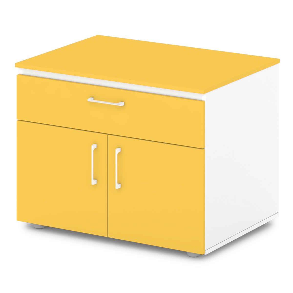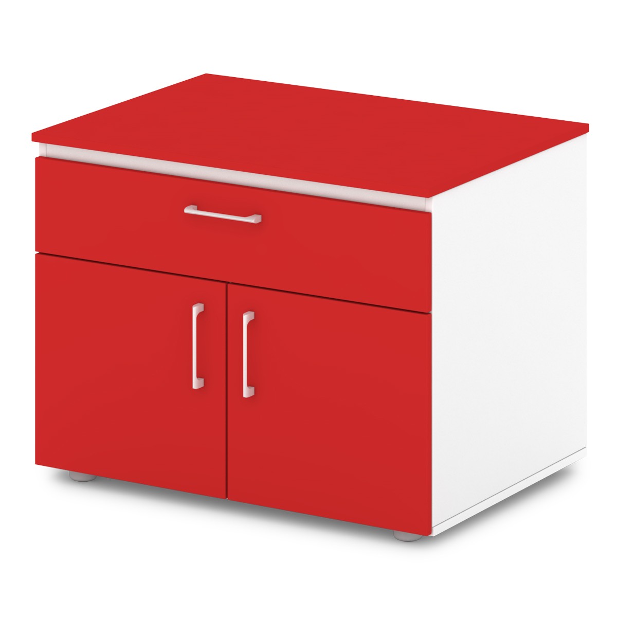 Тумба под оргтехнику. Артикул: S-280. Размер: 820x588x626. ЛДСП: 16 мм, 10 мм. Кромка: ABS 2 мм и 0,4 мм. Тумба под оргтехнику имеет один ящик на шариковых направляющих скрытого монтажа с системой самозадвижения и одну полку, закрытую распашными дверями. Верх, низ, бока тумбы, а также фасады, бока и задняя стенка ящика изготовлены из ЛДСП 16 мм. Задняя стенка тумбы и дно ящика изготовлены из ЛДСП 10 мм. Комбинированный топ и фасады тумбы могут быть выполнены из ЛДСП как в цвет каркаса тумбы, так и в других цветах серий Sentida и Sentida color. Фасады оклеены противоударной кромкой ABS 2 мм. Верх шкафа комбинированный 48 мм, с декоративным элементом цвета «Металлик», оклеен противоударной кромкой ABS 2 мм. Остальные детали оклеены кромкой ABS 0,4 мм. Верх дополнен декоративным элементом цвета «Металлик». Опоры тумбы снабжены компенсатором неровности пола. Все соединительные элементы оснащены фурнитурой для многократной сборки и разборки изделия. Используется фурнитура ведущих европейских производителей.