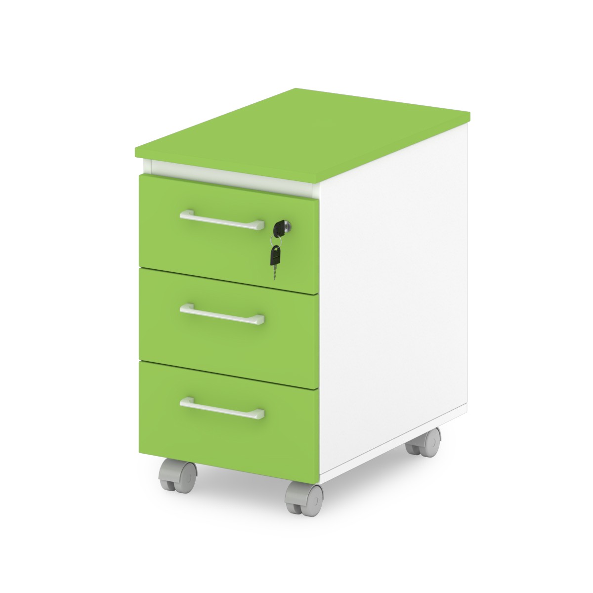 Офисная тумба подкатная малая с замком на первый ящик. Оборудована шариковыми направляющими скрытого монтажа с механизмом самозадвижения. Размер ящика позволяет разместить один ряд документов формата А4.
