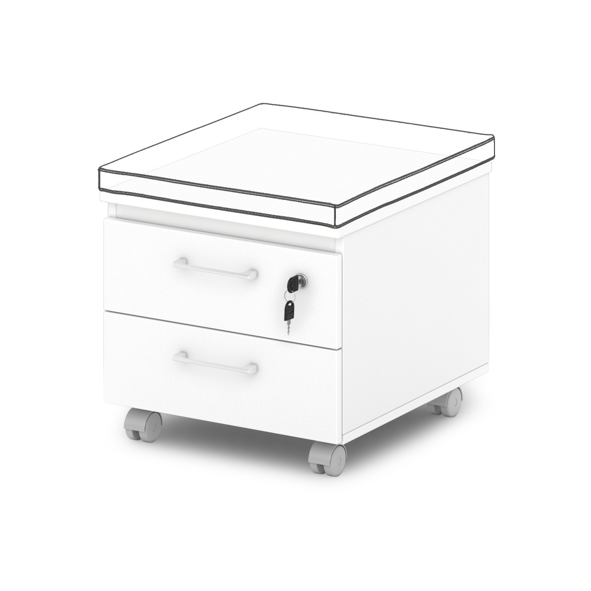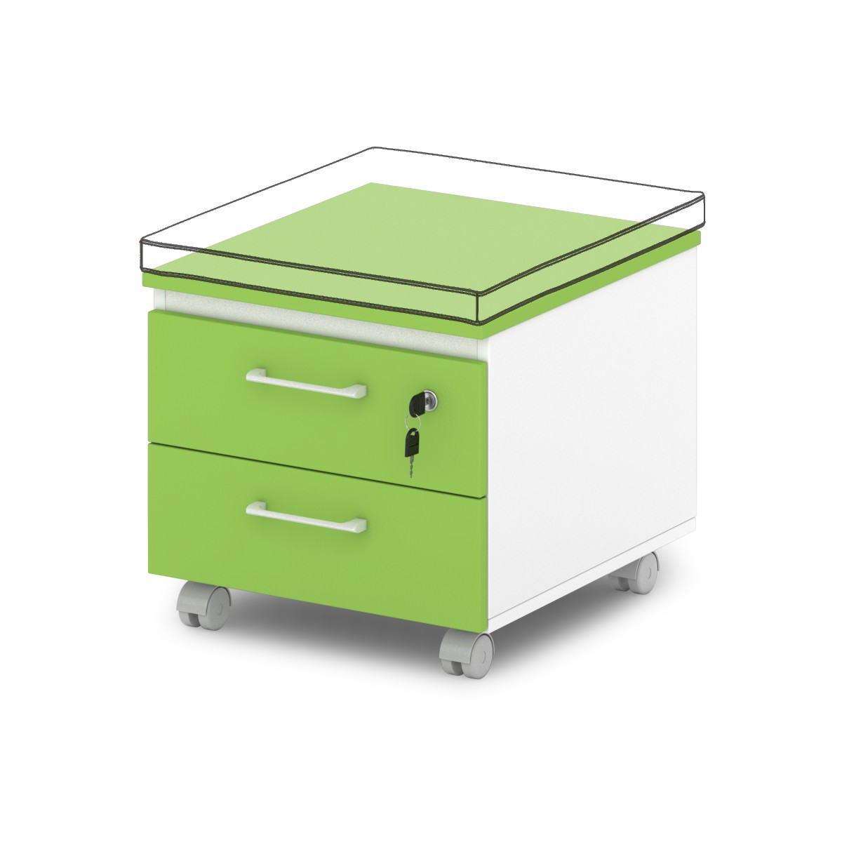 Офисная тумба подкатная низкая с замком на первый ящик. Оборудована шариковыми направляющими скрытого монтажа с механизмом самозадвижения. Размер ящика позволяет разместить два ряда документов формата А4.