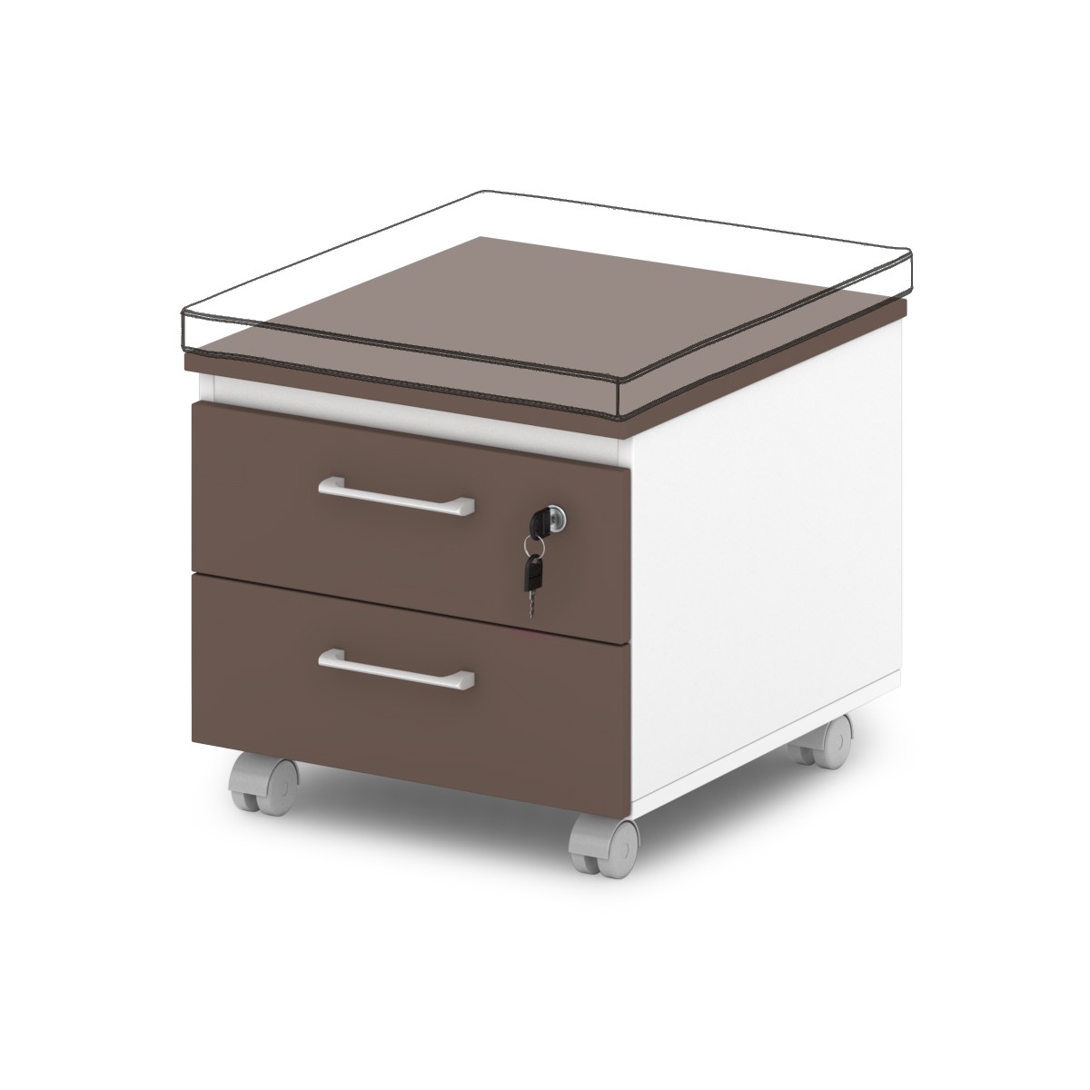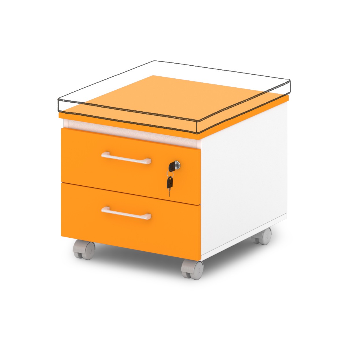 Офисная тумба подкатная низкая с замком на первый ящик. Оборудована шариковыми направляющими скрытого монтажа с механизмом самозадвижения. Размер ящика позволяет разместить два ряда документов формата А4.