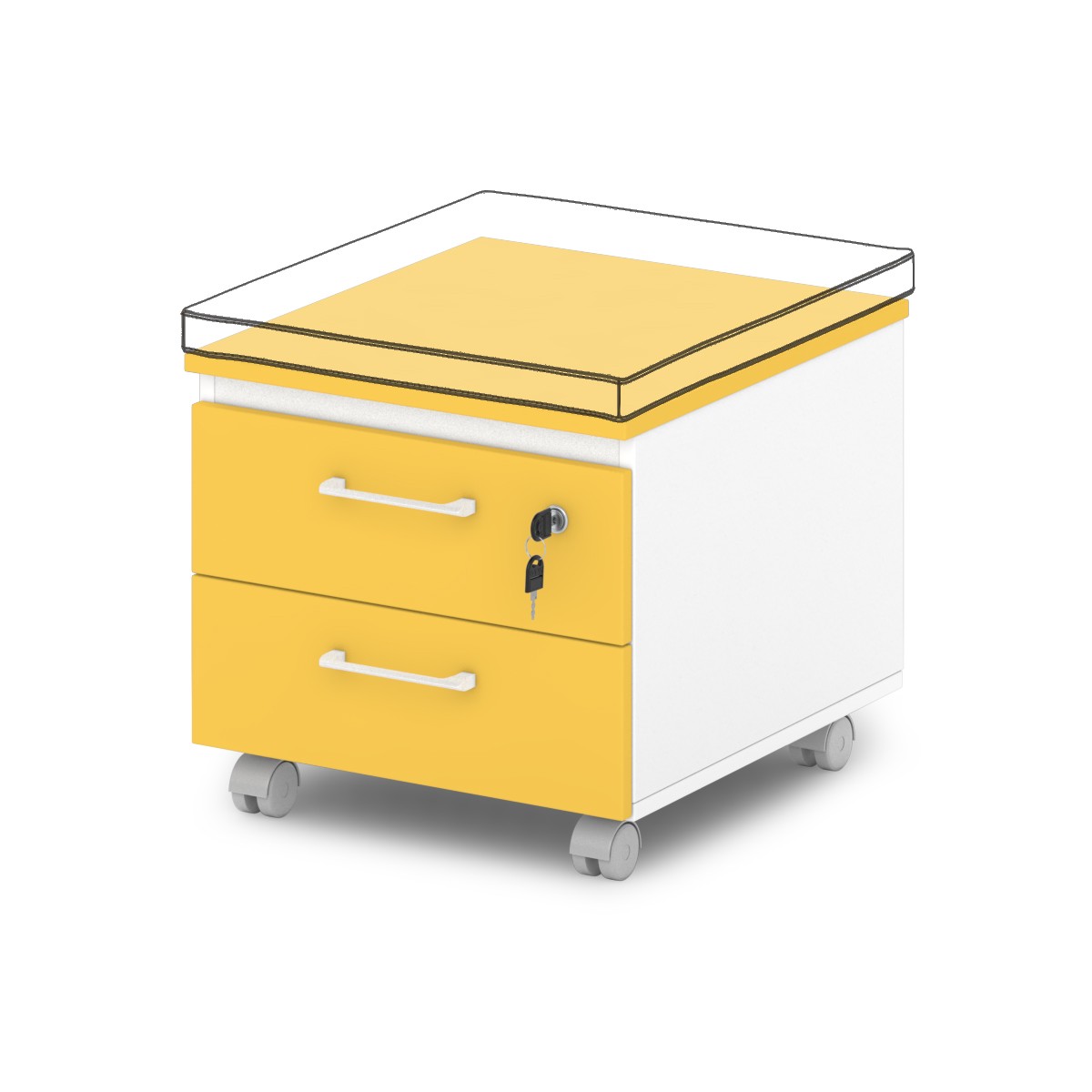 Тумба мобильная низкая. Артикул: S-96. Размер: 450х500х410. ЛДСП: 16 мм, 10 мм. Кромка: ABS 2 мм и 0,4 мм. Тумба подкатная мобильная имеет два ящика на шариковых направляющих скрытого монтажа с системой самозадвижения. Верхний ящик оснащен замком. Верх, низ, бока тумбы, задняя стенка тумбы, а также фасады, бока и задние стенки ящиков изготовлены из ЛДСП 16 мм. Дно ящиков изготовлены из ЛДСП 10 мм. Комбинированный топ и фасады тумбы могут быть выполнены из ЛДСП как в цвет каркаса тумбы, так и в других цветах серий «Sentida и Sentida color. Фасады оклеены противоударной кромкой ABS 2 мм. Верх тумбы комбинированный 48 мм, с декоративным элементом цвета «Металлик», оклеен противоударной кромкой ABS 2 и кромкой ABS 0,4 мм. Остальные детали оклеены кромкой ABS 0,4 мм. Тумба оснащена усиленными колесными опорами с целью использования ее в качестве места для сидения. Все соединительные элементы оснащены фурнитурой для многократной сборки и разборки изделия. Используется фурнитура ведущих европейских производителей.