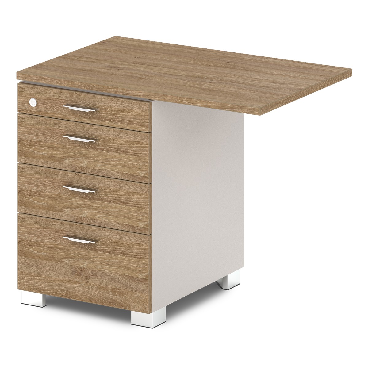 Офисная тумба приставная с метабоксами и замком на первый ящик.