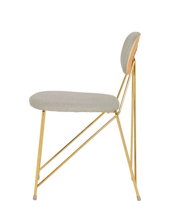 Утончённые хромированные золочёные ножки и тонкая фанерованная спина, обитая с внутренней стороны тканью - это оригинальный и необычный дизайн стула Alice.