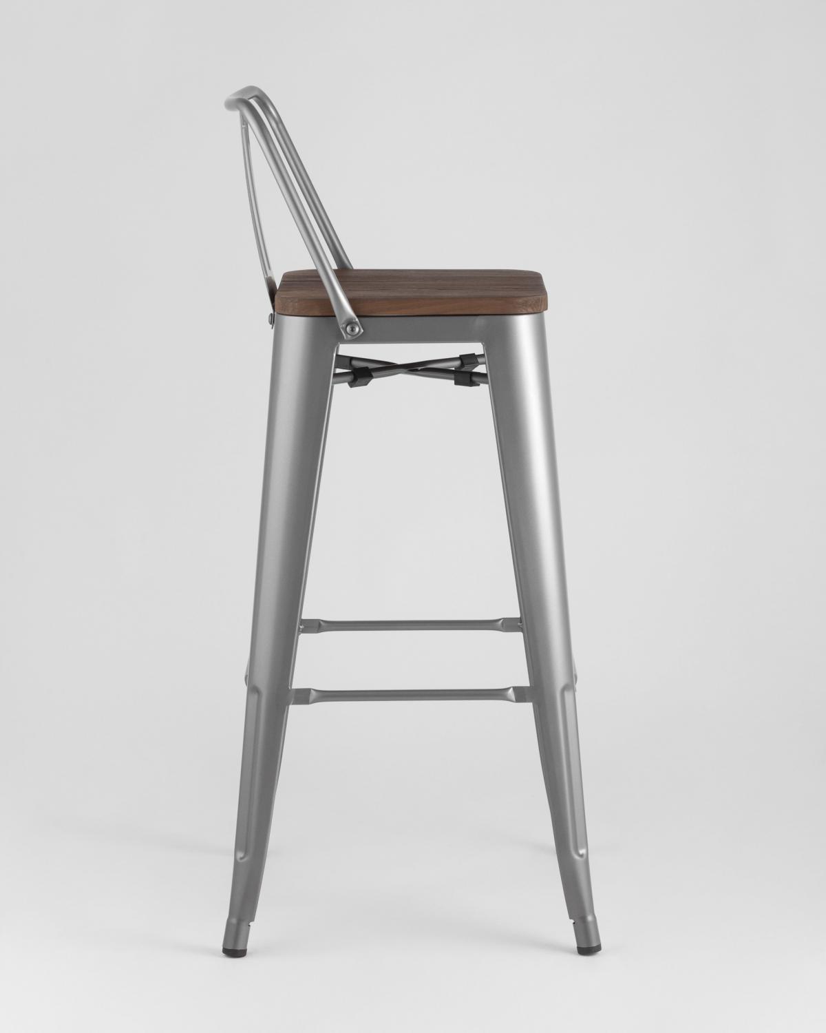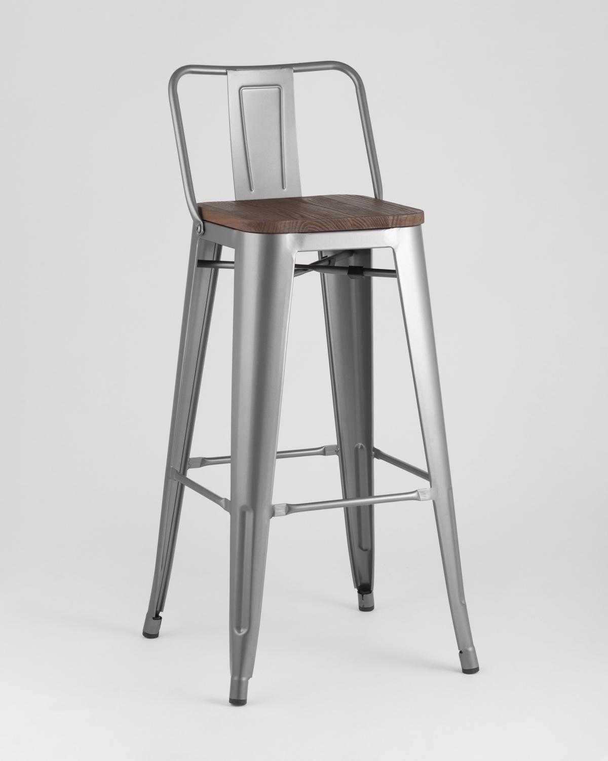 Стул барный TOLIX WOOD со спинкой серебристый матовый Stool Group серебристый матовый