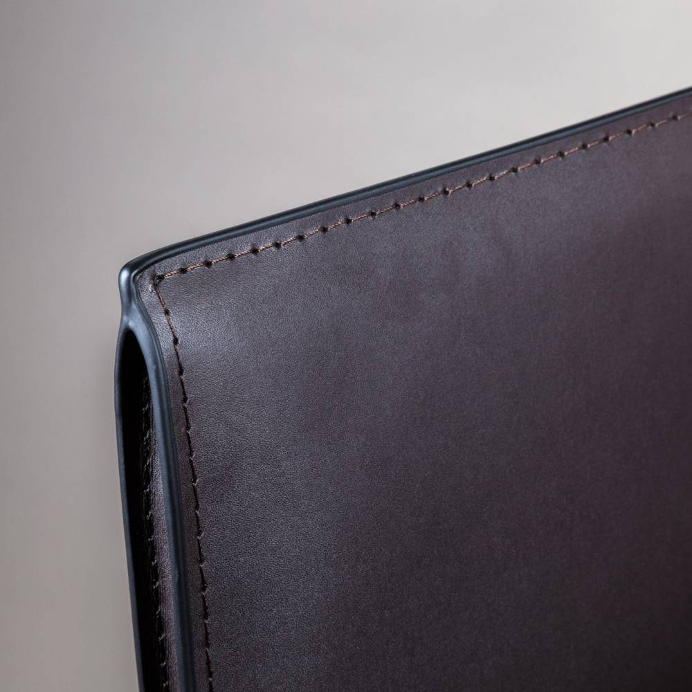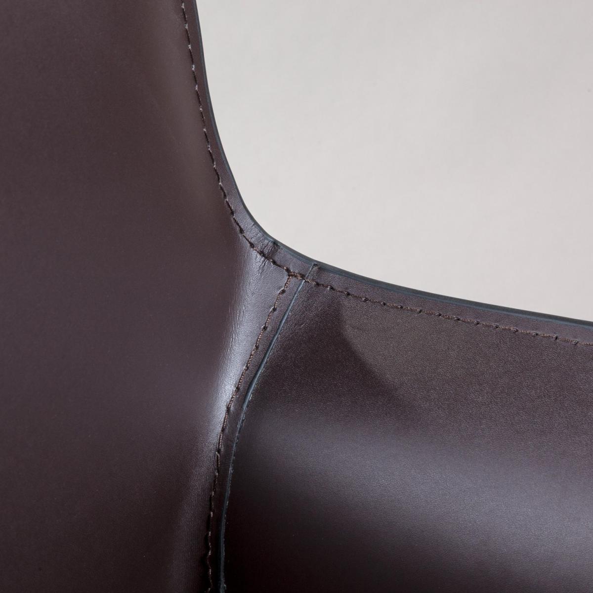Обивка стула выполнена в регенерированной коже – обивочном материале, который сделан путём переплетения расщеплённых волокон натуральной кожи. В состав модифицированной кожи также входят полимеры и специальные дубильные добавки.