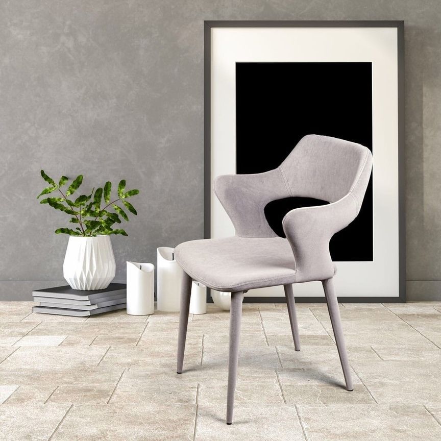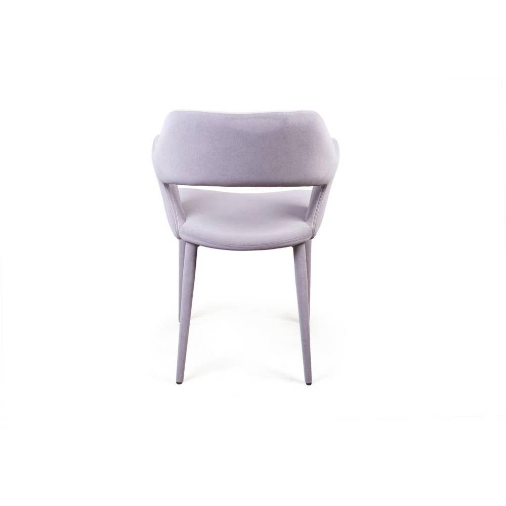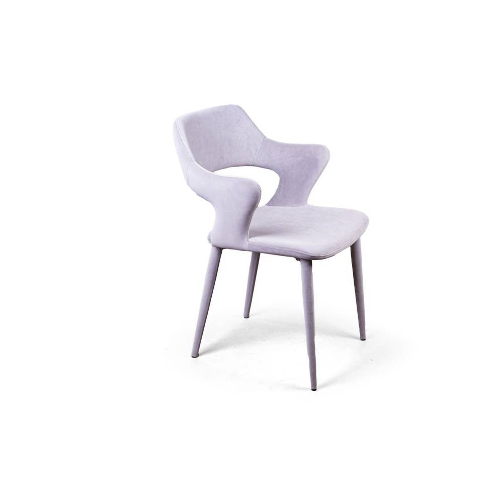 Ножки обеденных стульев обтянуты основной бархатной обивкой. Этот нюанс придает образу особую мягкость и целостность.
