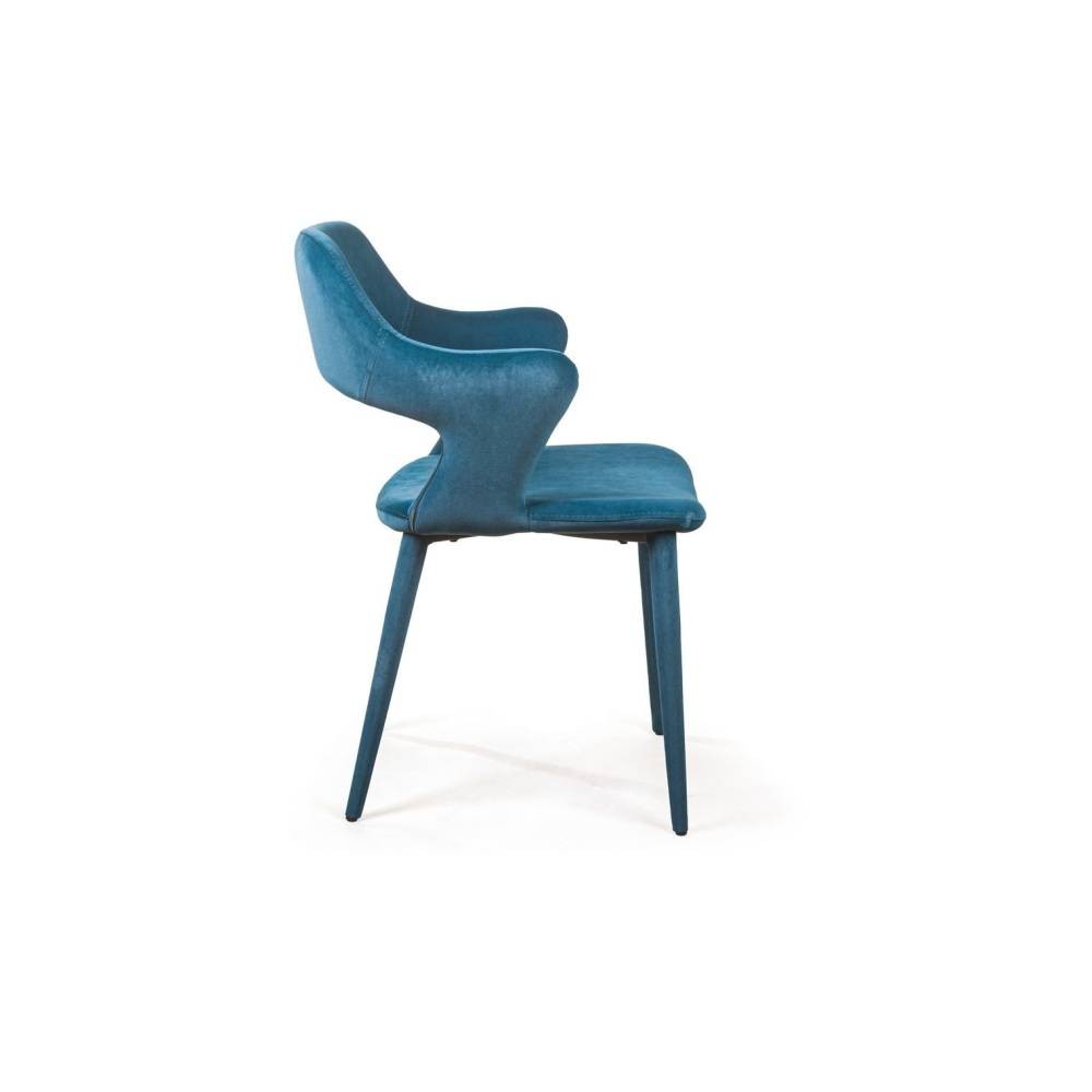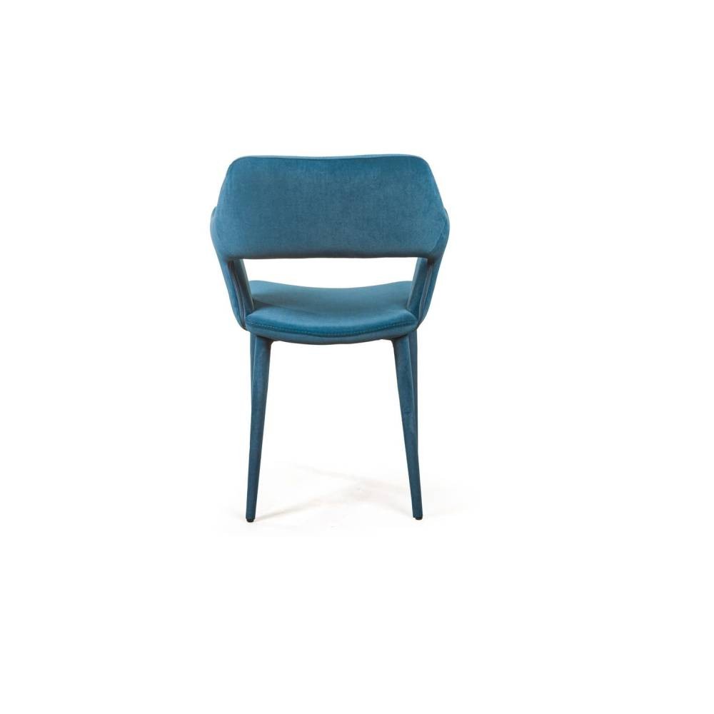 Ножки обеденных стульев обтянуты основной бархатной обивкой. Этот нюанс придает образу особую мягкость и целостность.