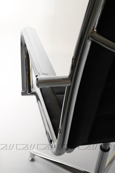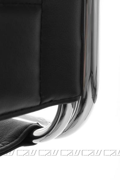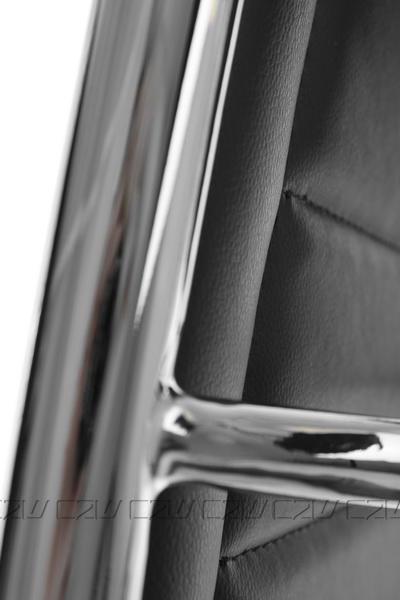 Оригинальный каркас из сдвоенной хромированной трубы позволил сделать обивку-сандвич из кожи, поролона и корта, без использования дополнительных ремней. В результате получилось идеальное эргономичное сиденье, способное выдерживать большой вес и не провисать годами. Каркас кресла имеет поясничный прогиб, чтобы разгружать спину во время работы, а округлая передняя часть сиденья не пережимает кровеносные сосуды на ногах.