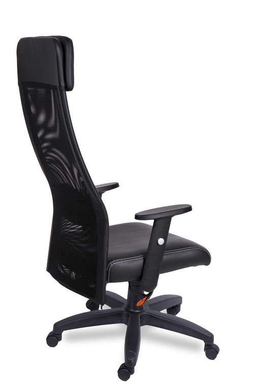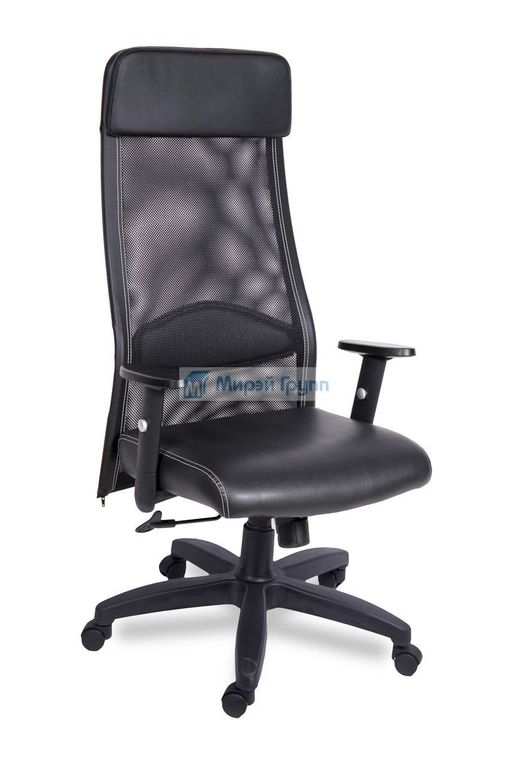 Спинка сетка, сидение экокожа, механизм ТОП-ГАН ЛЮКС с синхроплатой, крестовина пластик Америка, регулируемый по высоте подлокотник с мягкой полеуретановой накладкой