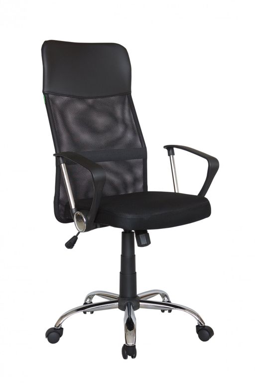 Компьютерное кресло Riva Chair 8074 (подголовник - экокожа) Чёрная ткань/ Чёрная сетка Черный