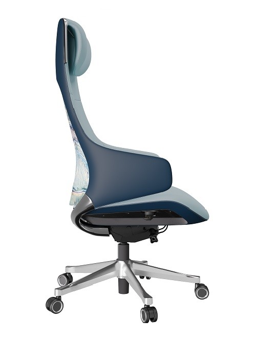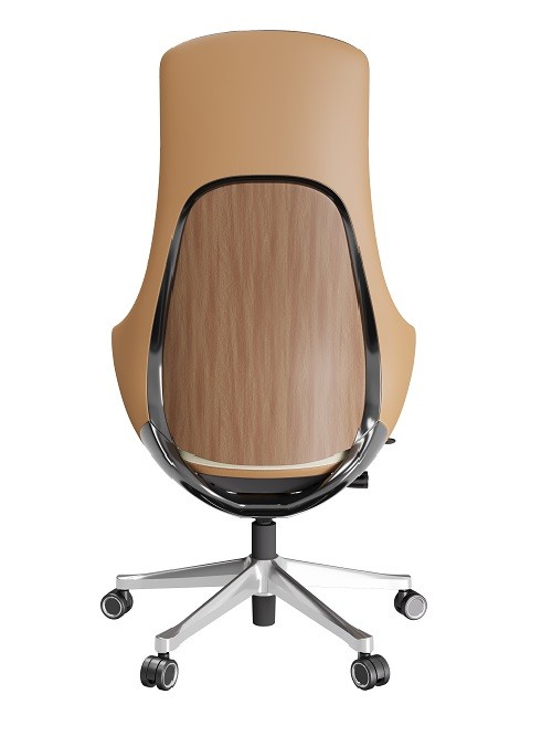Особенности: Кресло с высокой спинкой имеет хромированный дизайнерский элемент в задней части спинки.