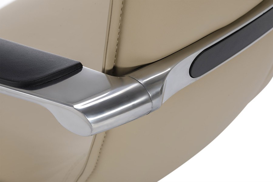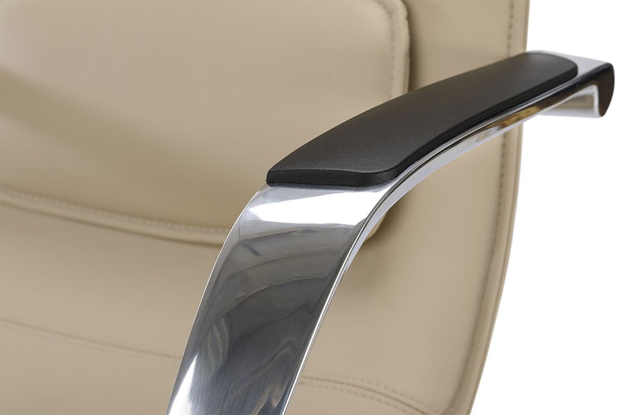 Кресла Колумб – новая, перспективная разработка с удобным, упругим сиденьем и спинкой, выполненных как единое целое. Основа – формованный пенопоулетан, обтянутый инновационным покрытием, приятного бежевого или серого цвета. Тонкий каркас кресла формирует легкий силуэт, стимулирующий полет мыслей к новым свершениям и открытиям. Модель привлекает внимание как людей ценящих удобство, так и заботящихся о правильной осанке, сохранить которую помогает специальная ортопедическая подушка на магните, обеспечивающая выраженную поясничную поддержку. Современный стиль модели подчеркивают массивные хромированные подлокотники, с плавными изгибами и полиуретановыми накладками.
