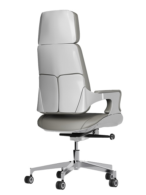 Спинка: Эргономичной формы, задняя часть отделана 4-мя алюминиевыми пластинами, образующими яркий дизайнерский элемент. Спинка отодвигается назад, позволяя регулировать глубину сидения.