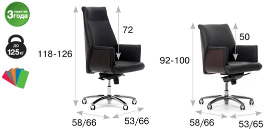 Складское кресло Zeus представлено в двух вариантах: с высокой и низкой спинкой c полированной базой, в натуральной коже черного цвета. Модель снабжена механизмом качания с возможностью фиксации спинки, с регулировкой сиденья по высоте и регулировкой жесткости пружины по весу сидящего.