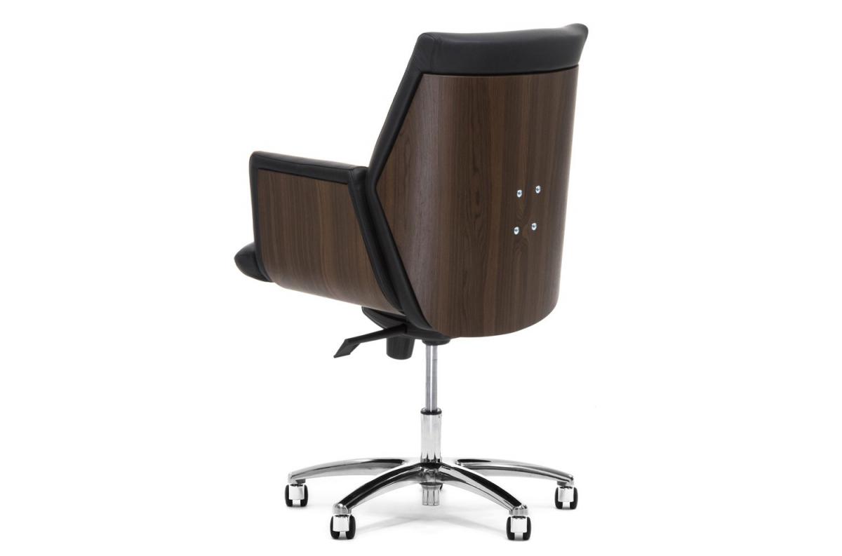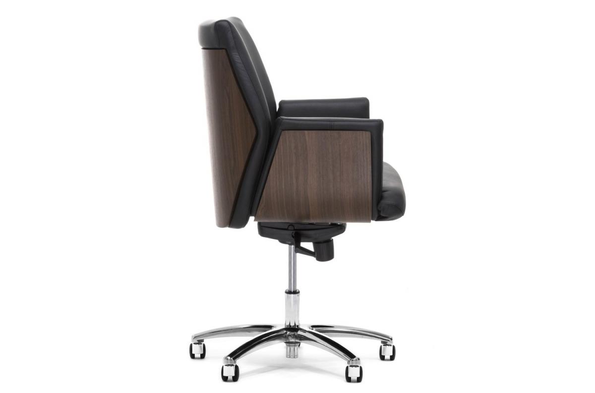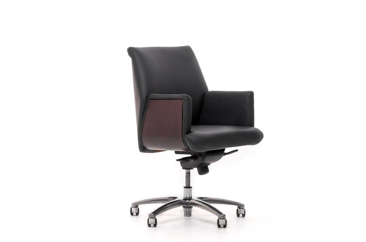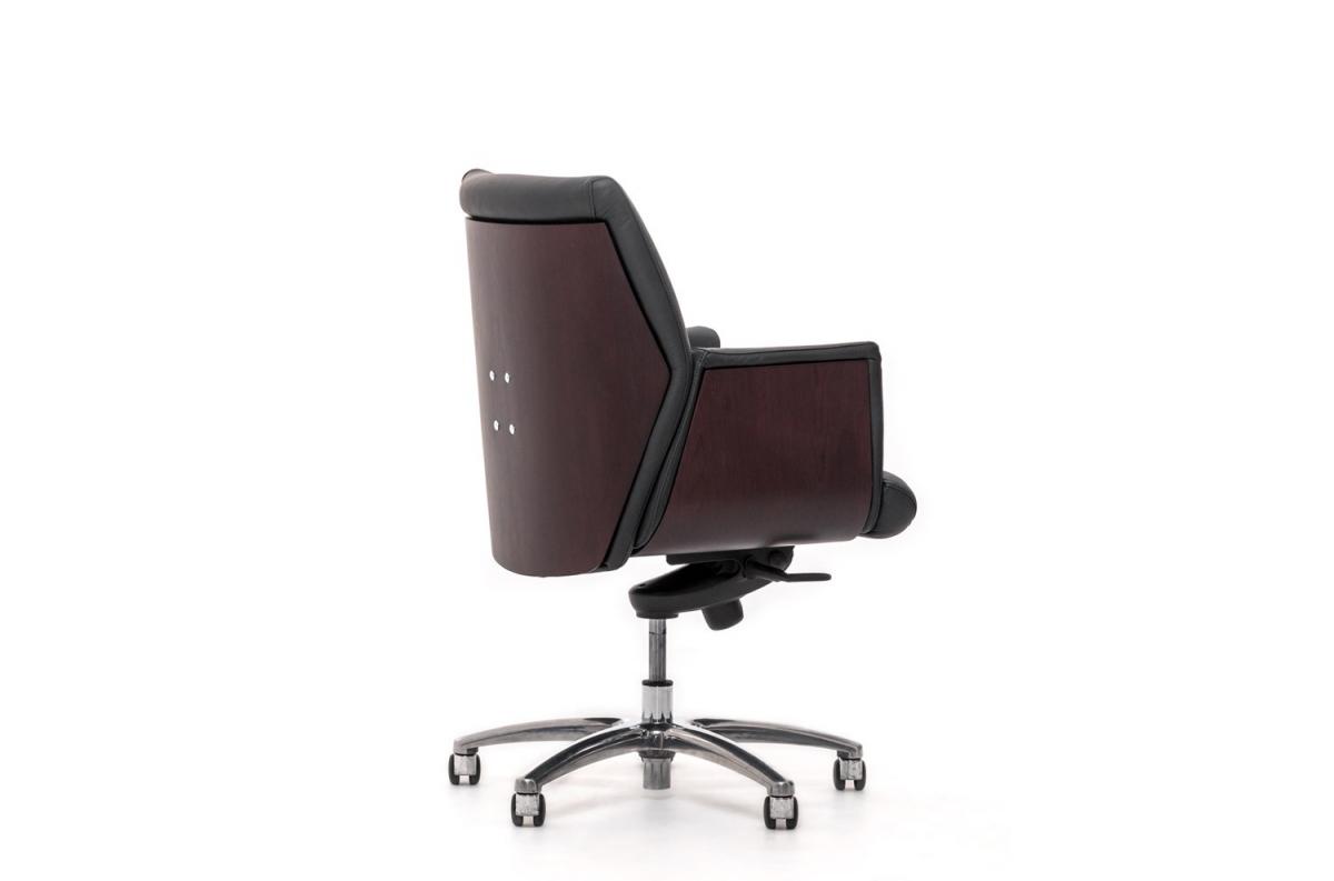 Складское кресло Zeus представлено в двух вариантах: с высокой и низкой спинкой c полированной базой, в натуральной коже черного цвета. Модель снабжена механизмом качания с возможностью фиксации спинки, с регулировкой сиденья по высоте и регулировкой жесткости пружины по весу сидящего.