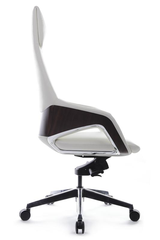 Премиальные материалы. Сочетание натуральной кожи, вставок под дерево и алюминиевых элементов создаёт благородный визуальный контраст, придавая креслу статусный вид.