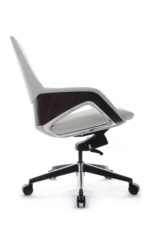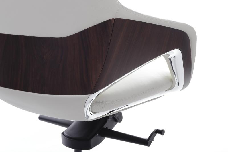 Премиальные материалы. Сочетание натуральной кожи, вставок под дерево и алюминиевых элементов создаёт благородный визуальный контраст, придавая креслу статусный вид.